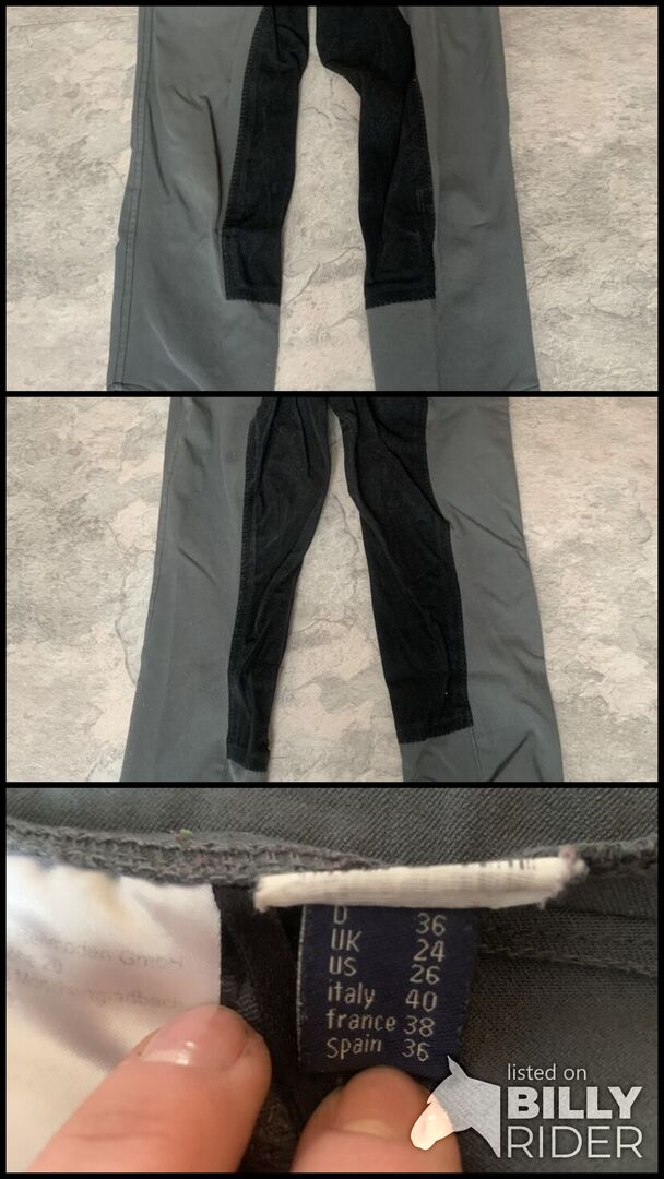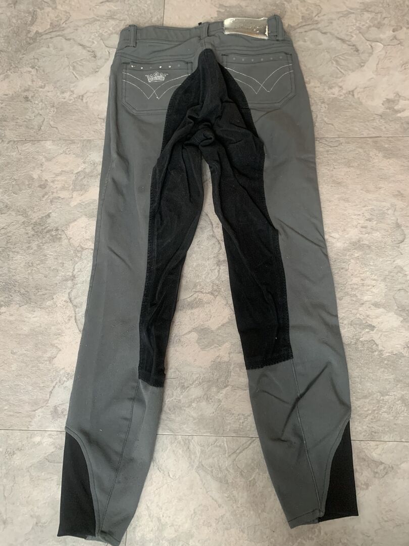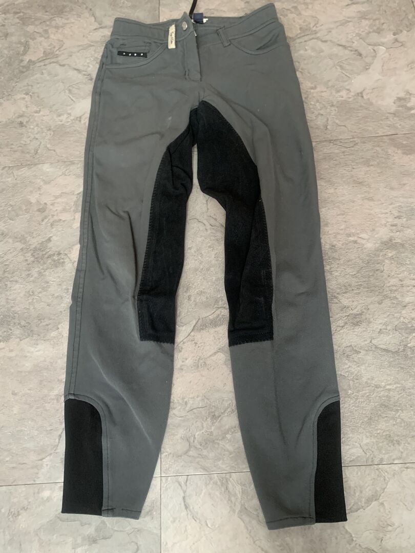 Bryczesy jeździeckie szare S - Na sprzedaż jest para bryczesów z pełnym siedzeniem w kolorze szarym. Bryczesy są używane, ale w dobrym stanie.