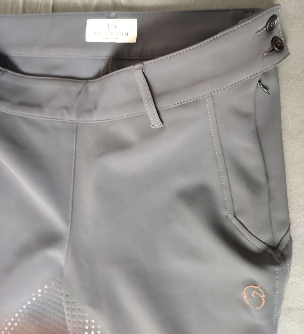 Bryczesy jeździeckie VESTRUM fullgrip jak nowe - Niebiesko-szare bryczesy włoskiej luksusowej marki Vestrum, fullgrip, jak nowe! Zapięcie z boku. Rozmiar odpowiada 38/40. Nowa cena ok. 200€.