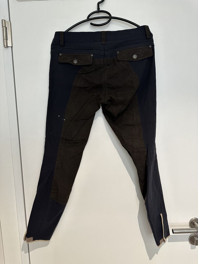 Bryczesy jeździeckie z pełnym siedziskiem rozmiar 38 - Bryczesy jeździeckie z pełnym siedziskiem w kolorze ciemnobrązowym rozmiar 38 Długość mierzona na zewnątrz nogawki 88cm