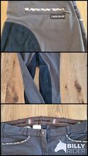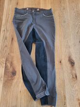 Bryczesy jeździeckie z pełnym siedziskiem rozmiar 42 szare - Dobrze zachowane bryczesy z pełnym siedziskiem w kolorze szarym z czarnym zamszowym pełnym siedziskiem w rozmiarze 42