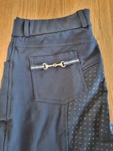Bryczesy jeździeckie z pełnym siedziskiem silikonowym rozmiar 84 - Na sprzedaż mało noszone bryczesy jeździeckie Cheval de Luxe (Loesdau), w kolorze ciemnoniebieskim z silikonowym pełnym siedziskiem w rozmiarze 84. Jest to długi rozmiar i odpowiada rozmiarowi 42, tylko z długą nogawką. Możliwa wysyłka i PayPal