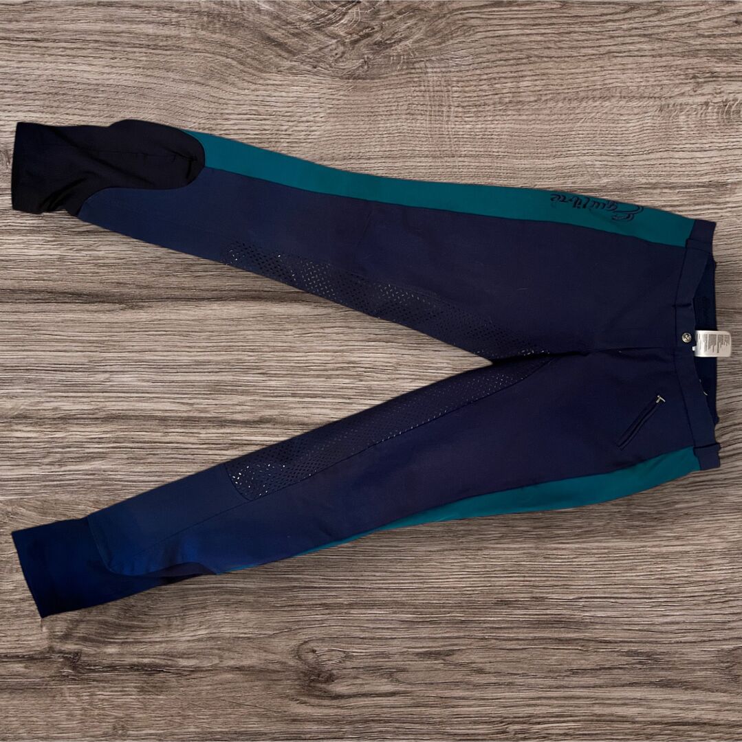 Bryczesy jeździeckie z pełnym uchwytem Equilibre blue-petrol