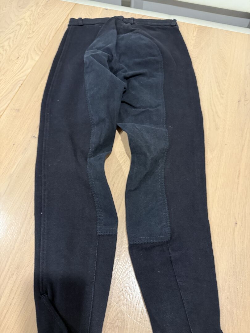 Bryczesy jeździeckie zamsz 36 - Sprzedajemy parę bryczesów jeździeckich z czarnego zamszu. Wnętrze jest obszyte skórą w rozmiarze 36. Bryczesy są jak nowe, ponieważ prawie nie były noszone.