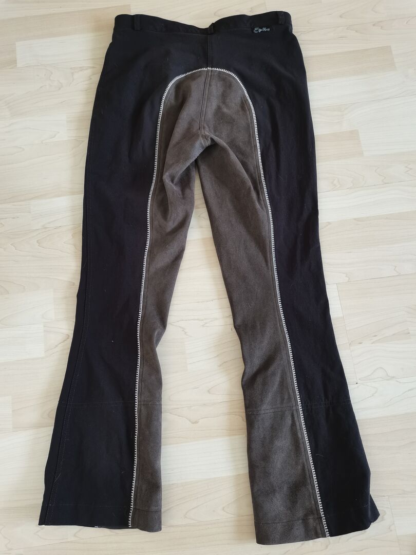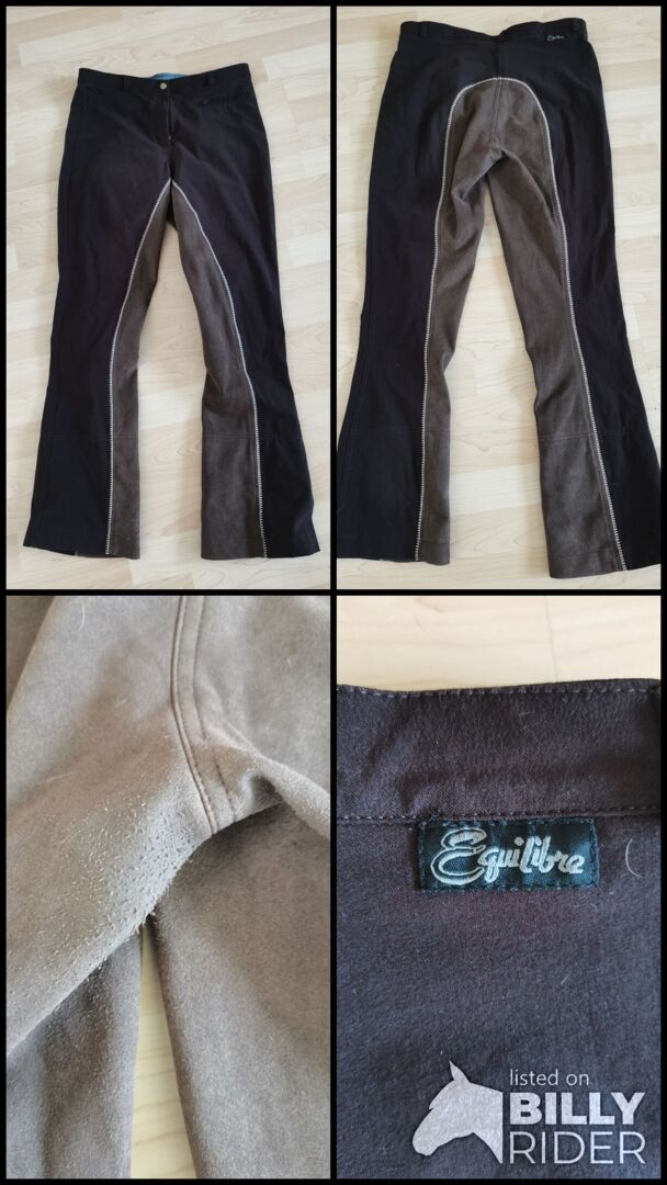 Bryczesy Jodhpur rozmiar 42 marki Equilibre, w dobrym stanie - Oferuje dobrze zachowane bryczesy Jodhpur firmy Equilibre w rozmiarze 42, talia pojedyncza i nierozciągnięta 41cm, długość zewnętrzna nogawki 105cm, lekkie zaplamienie na dole, bez możliwości zwrotu jako sprzedaż prywatna.