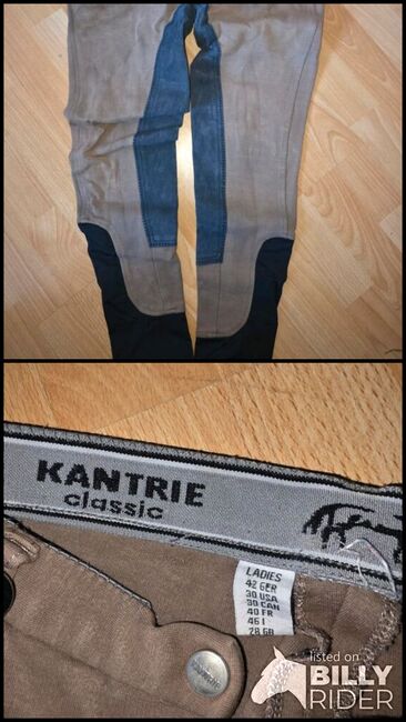 Bryczesy Kantrie rozmiar 42 z pełnym siedziskiem - Oferuję na sprzedaż rzadko noszone bryczesy jeździeckie firmy Kantrie ze skórzanym pełnym siedziskiem w rozmiarze 42. Można odebrać w Recklinghausen lub wysłać po kosztach. Sprzedaż prywatna, dlatego nie ma gwarancji, gwarancji ani zwrotu.