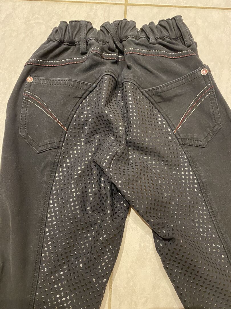 Bryczesy Pikeur - Zużyta, ale w bardzo dobrym stanie. Zamek błyskawiczny, szwy, uchwyt, wszystko na wierzchu. Nie łuszczy się. W jednym miejscu w pasie wszyto gumkę dla lepszego trzymania. Pikeur - Dziecięce bryczesy z siedziskiem PATRIZIA GIRL GRIP Modne bryczesy dziecięce i młodzieżowe z 4 kieszeniami, z nadrukiem transferowym Pikeur z boku, nowoczesną przędzą kontrastową i pięknymi nitami. Z innowacyjną powłoką PU w obszarze wkładki siedziska, antypoślizgową i trwałą. Obszycie nogawek jest wykonane z elastycznej tkaniny. Z przodu kieszeń zapinana na suwak. Bryczesy są wykonane z odpornej na zużycie bawełny Microcotton Dynamic. Materiał: 66% bawełna, 27% poliamid, 7% elastan.