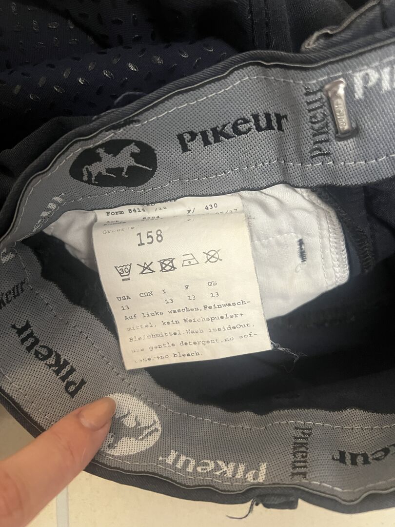 Bryczesy Pikeur w kolorze szarym i niebieskim - Sprzedam dwa dziecięce bryczesy, jasnoszary i granatowy. Szary jest lekko uszkodzony z jednej strony, ale nie wpływa na noszenie.