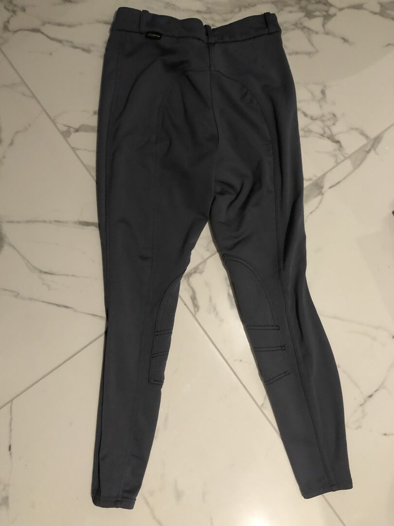 Bryczesy przejściowe/zimowe Xs Grey - Ciepłe, szare joddery do wygodnej pracy na koniu nawet w zimie, ze szlufkami na pasek. Doskonałe bryczesy na wiatr i niepogodę.