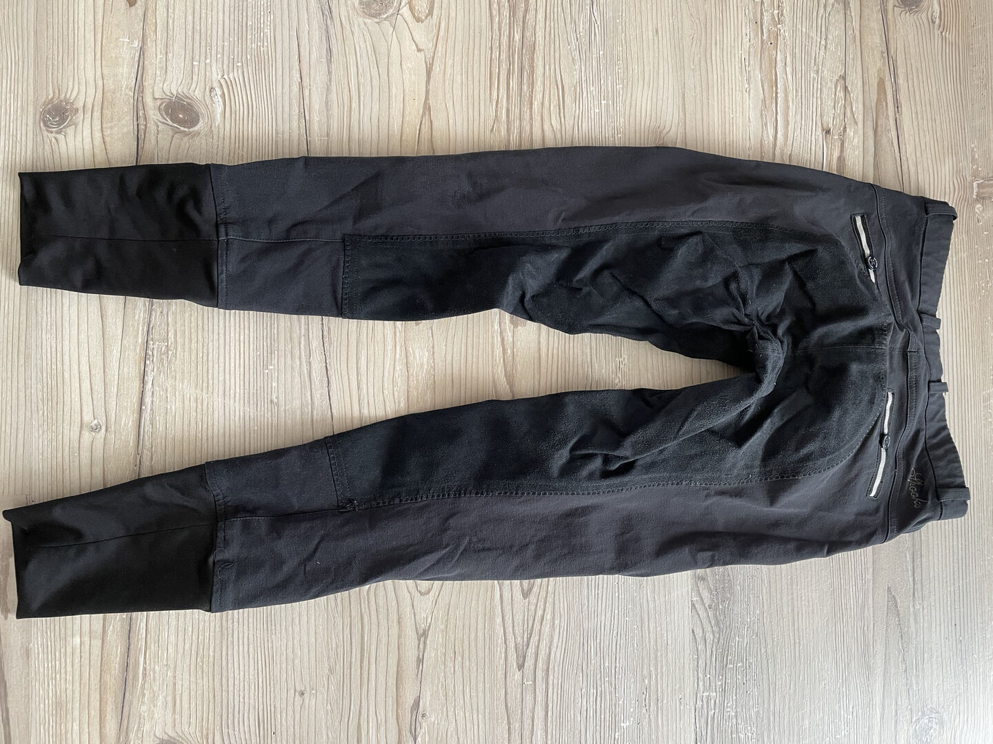 Bryczesy Spooks czarne z pełnym siedziskiem XS - czarne bryczesy Spooks z pełnym siedziskiem, są w idealnym stanie, kolor jest trochę wyprany, pełne siedzisko ma trochę pillingów