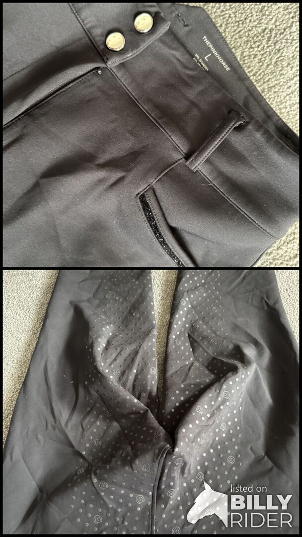 Błyszczące detale: Stylowy akcent - błyszczące akcenty na kieszeniach przyciągają wzrok i nadają bryczesom nowoczesny, wyrafinowany charakter.