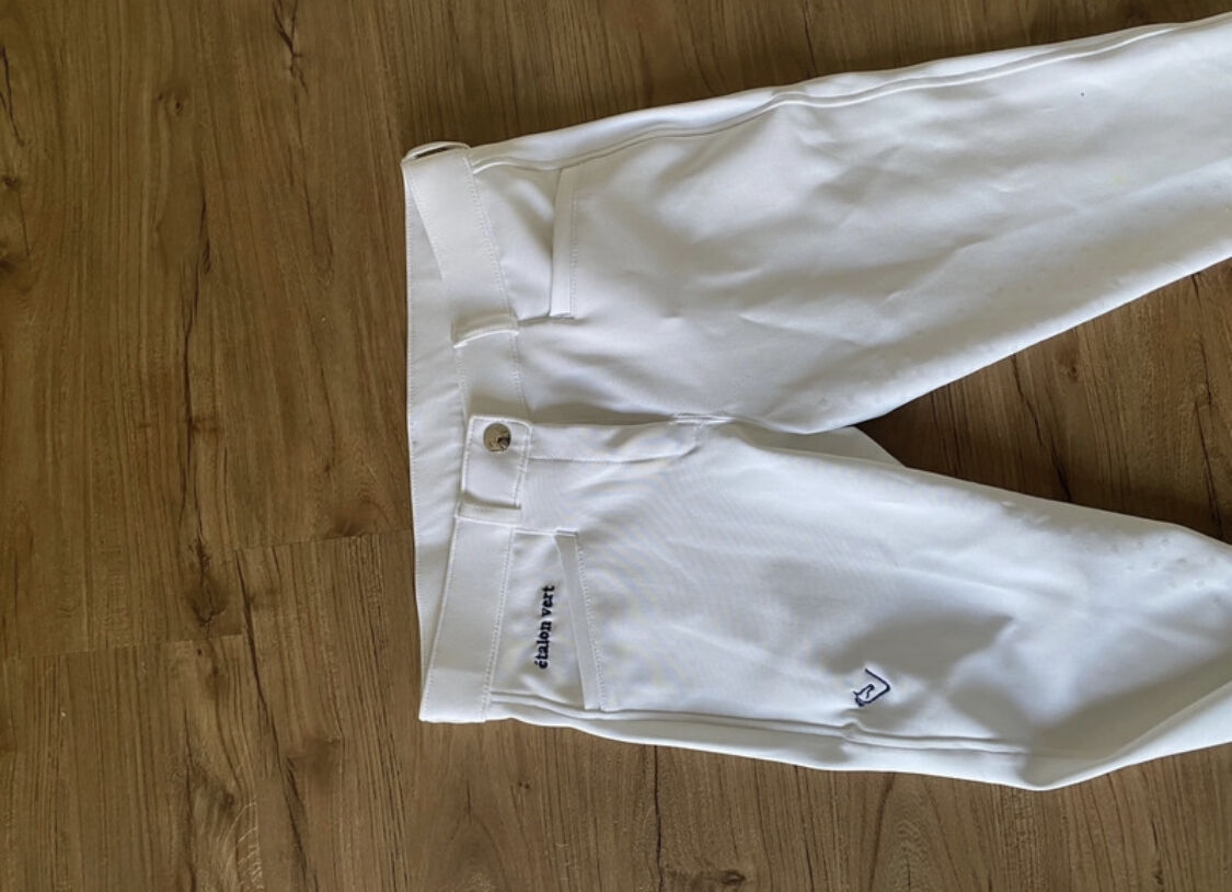 Bryczesy zawodnicze etalon vert white 38 - etalon vert Quick Star full grip bryczesy zawodnicze rozmiar 38 nigdy nie noszone na koniu jak nowe, bardzo dobrze dopasowane oryginalna cena: 140€ Cena: 120€ + 5€ wysyłka