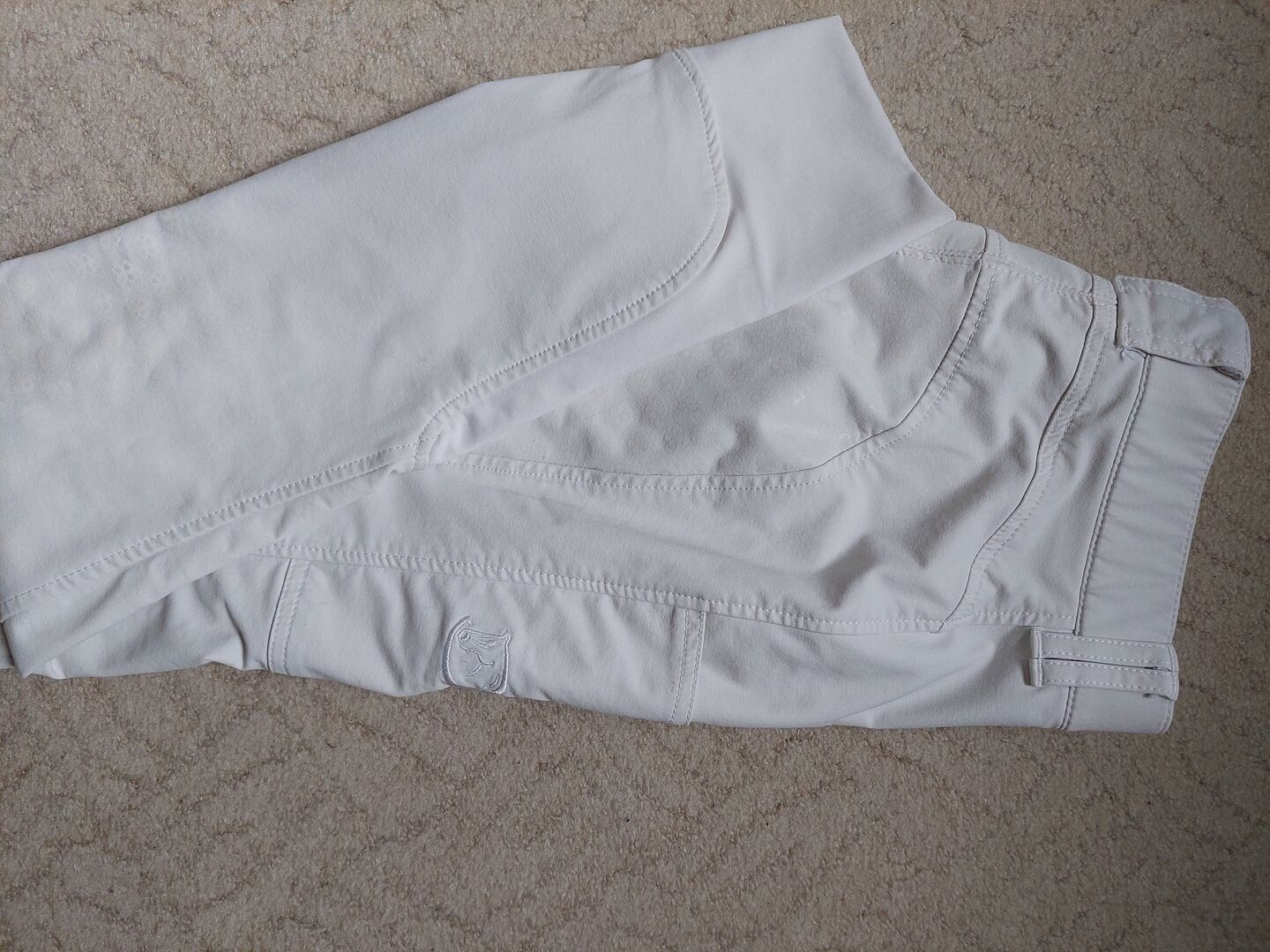 Bryczesy zawodnicze Riderschoise, rozmiar 36 - Sprzedaję te szczęśliwe białe bryczesy od Riderschoise w rozmiarze 36, ponieważ niestety stały się za małe dla mojej córki. Spodnie są świetnej jakości, bez dziur, bez otwartych szwów. Nogawki mają elastyczne mankiety. Jesteśmy niepalącym gospodarstwem domowym. Możliwy odbiór lub wysyłka. Płatność przy odbiorze lub możliwa również paypal. Cena obejmuje wysyłkę.