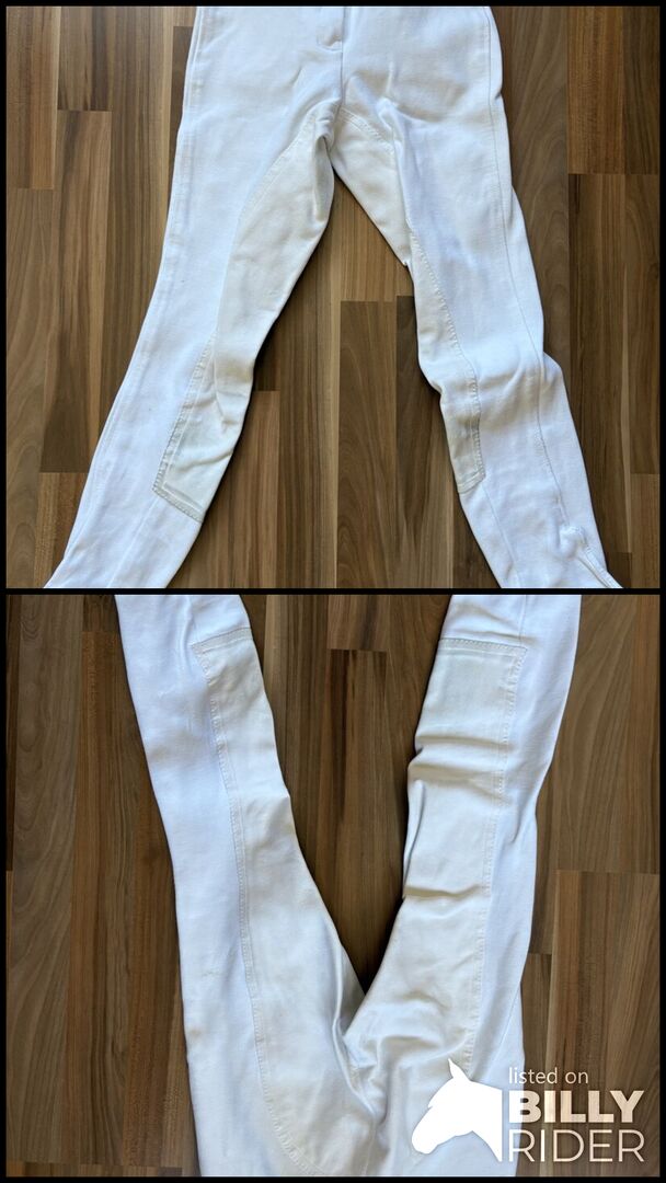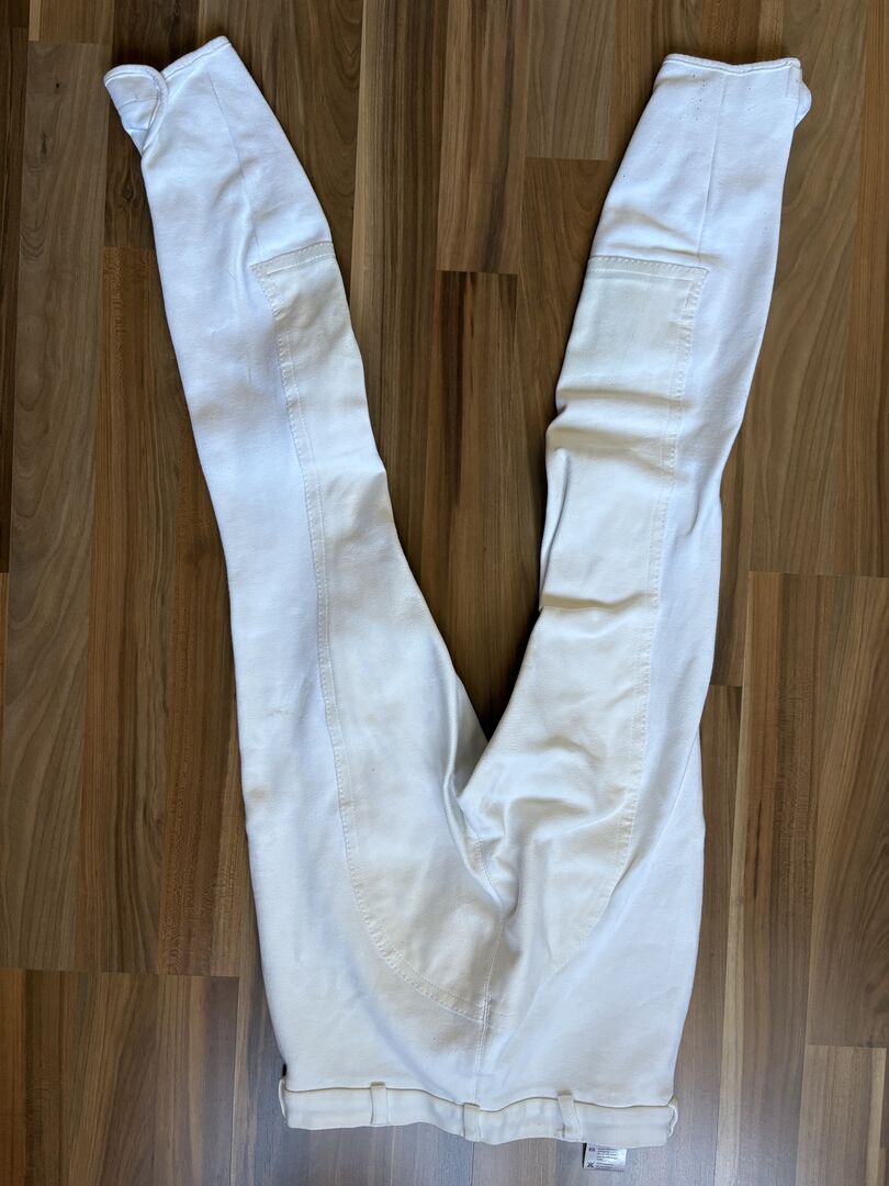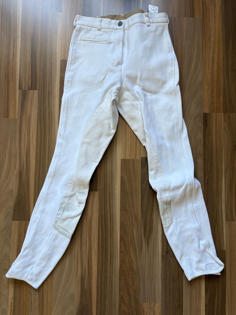 Bryczesy zawodnicze rozmiar 36 - Sprzedam parę białych skórzanych bryczesów konkursowych HKM w rozmiarze 36. Bryczesy były noszone tylko raz i od tego czasu leżą w szafie. Są nieco starsze, ale nadal w dobrym stanie.