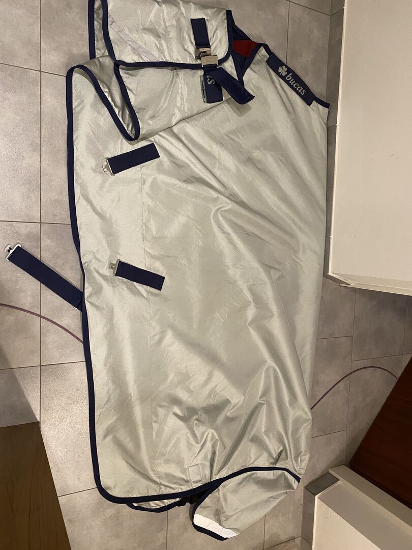 Koc był na koniu przez 2 dni! Niestety jest za duży! Cena pierwotna wynosiła € 275,-. Została wyprana delikatnie w temperaturze 30 stopni! Jak nowy! Świetny koc na świeżym powietrzu! Można również nakładać na jeszcze mokrego konia!!!