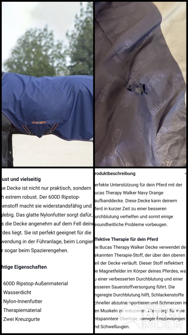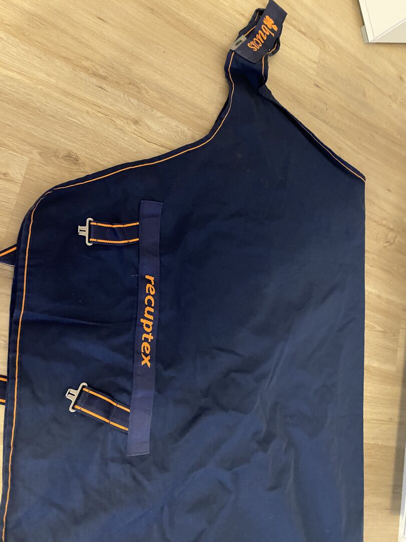 Bucas Recuptex Walker 145, dywanik do chodzenia dla koni Dywanik terapeutyczny - Mało używany kocyk Bucas Recuptex Therapy w rozmiarze L, dokładny opis na zdjęciach. Niestety mała myszka lubiła zjadać podszewkę w środku, ale nie na tylnej części, więc małe dziurki nie mają wpływu na funkcjonalność kocyka. Świeżo wyprany.
