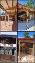 - stajnie zewnętrzne - boksy kryte - wiaty - stojaki na siano Nasze stajnie to - Najwyższa jakość - Maksymalna odporność na obciążenie śniegiem Wyposażenie wszystkich modeli: - Solidne słupki ze stali ocynkowanej ogniowo - Drzwi do stajni z oddzielną ościeżnicą, wzmocnioną konstrukcją ze stali ocynkowanej ogniowo i laminowanym szkłem bezpiecznym w górnej części - Brązowe, impregnowane deski na pióro i wpust