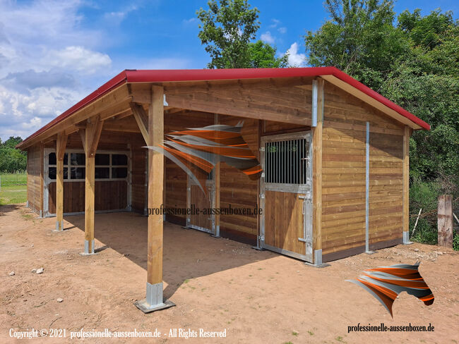 Budowa boksu i stajni dla koni | Budowa stajni dla koni - Kup boksy zewnętrzne i idealną otwartą stajnię - Strona internetowa: www.professionelle-aussenboxen.de