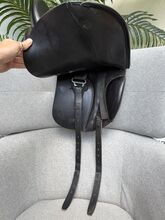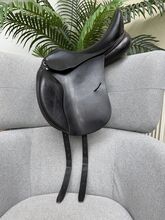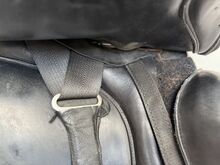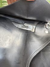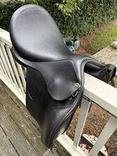 Busse Basel 17,5-calowe skórzane siodło ujeżdżeniowe - Skórzane siodło ujeżdżeniowe, wygodne i z dobrze wyważonym siedziskiem. Ze względu na krótkie klapy i zdejmowane policzki, siodło może być również używane do skoków. Zrobiłem to i bardzo mi się podobało. Siodło kupiłem nowe w 2020 roku za 1800 euro, od mojego saddle fittera. Nadal jestem zadowolona z siodła, ale niestety mój koń stracił dużo masy mięśniowej z powodu choroby, więc siodło nie pasuje już dobrze. Jest już o dzień starszy i prawdopodobnie nie wróci do swojego dawnego poziomu, dlatego sprzedaję to siodło. Siodło zawsze było dobrze utrzymane. Zostało sprawdzone po ostatnim użyciu i okazało się, że jest całkowicie w porządku przez DS saddle service. W razie potrzeby łęk można wyregulować w prasie. Jednak nigdy nie było to robione z tym siodłem.