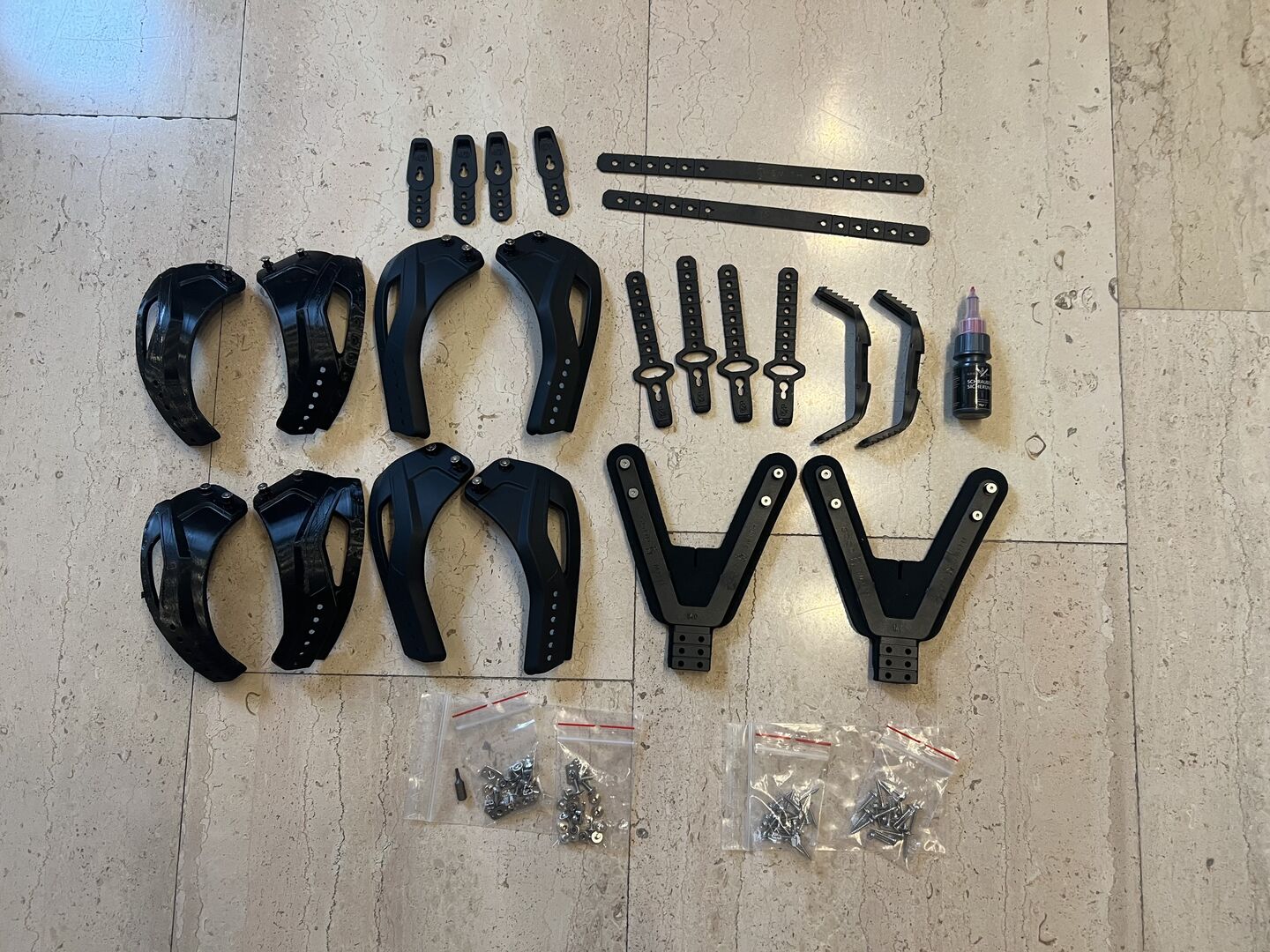 Buty do kopyt Goodsmith (bez podstawy) - Sprzedaję zestaw kopyt Goodsmith (1 para), ponieważ w końcu go nie potrzebuję. Niestety przyciąłem już podstawy do odpowiedniego rozmiaru. Dlatego sprzedaję zestaw bez płyt bazowych. Panele boczne rozmiar 140 (2 pary w rezerwie) Getry rozmiar 140 Tradycyjne paski rozmiar 120-140