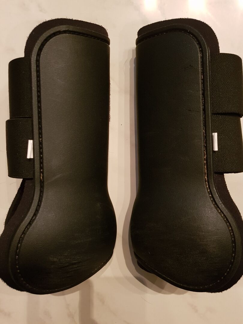 Buty do skoków przez przeszkody na przednie nogi - Sprzedam buty do skoków w przód od Protect Horse-Friends. Rozmiar: L Kolor: czarny Bardzo nieznaczne ślady użytkowania po wewnętrznej stronie