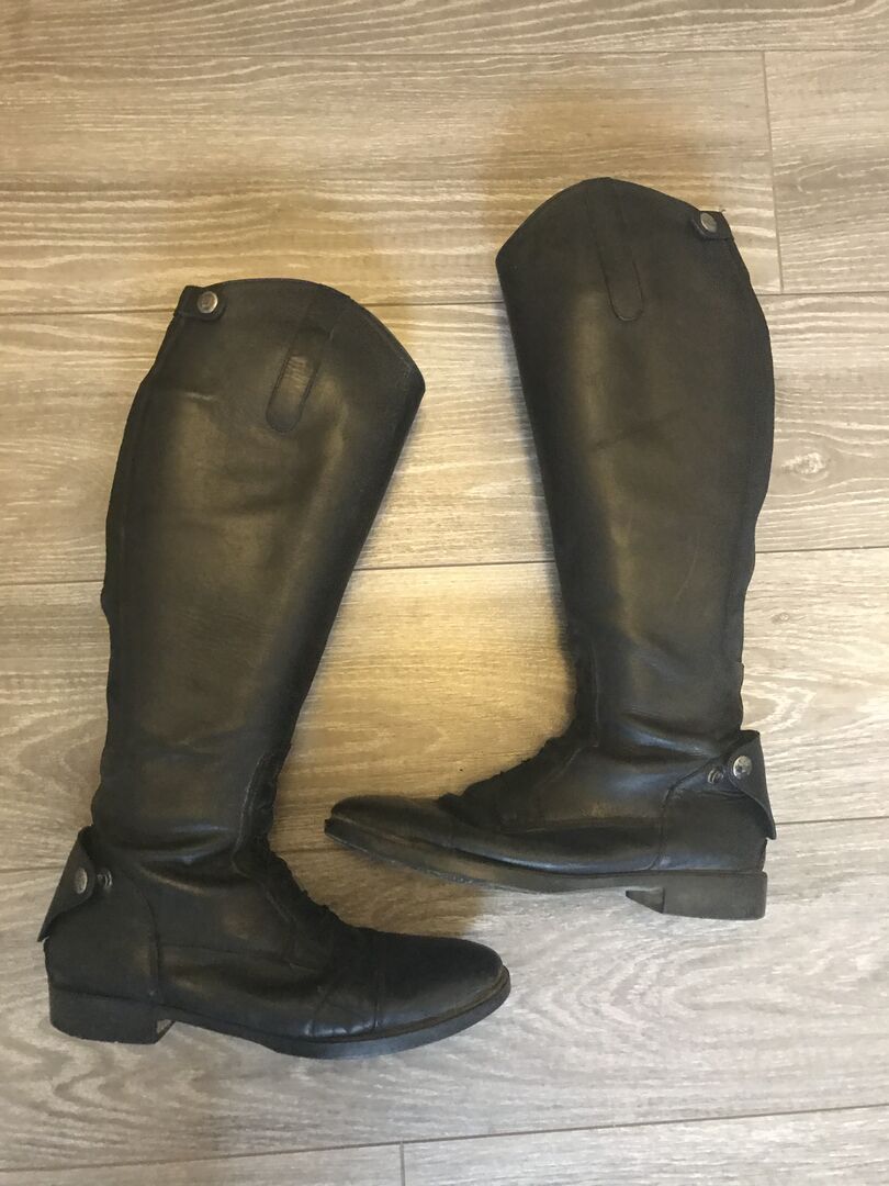 Buty jeździeckie - Moin, oferuję tutaj buty do jazdy konnej, które są w dobrym stanie i mają reaktywnie duży obwód ściany. Sprzedaję również piórnik i cholewki na buty. Sprzedaż ta nie jest objęta gwarancją, a koszty przesyłki należy pokryć we własnym zakresie.
