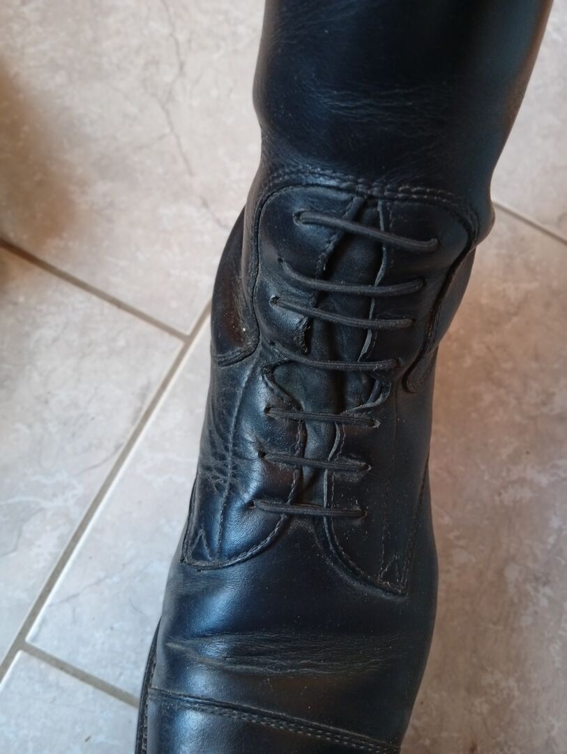 Cechy i stan: Eleganckie przednie sznurowanie, które jest nie tylko atrakcyjne wizualnie, ale także pozwala na dobre dopasowanie do stopy Bardzo dobra, stabilna podeszwa z niewielkimi otarciami - zapewnia bezpieczne trzymanie w strzemionach Skóra w dobrym stanie, prawie bez przetarć