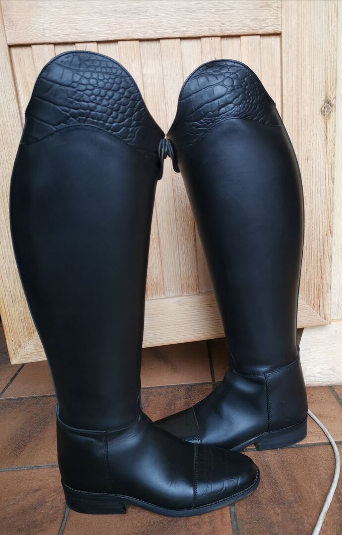 Buty jeździeckie czarne rozmiar 37 / 37,5 piękne optycznie - Z ciężkim sercem sprzedaję nowe, szyte na miarę buty firmy Healthy Horse / Lipizia. Niestety po przerwie w jeździe nie pasują już na mnie. Pierwotna cena wynosiła 390 EUR.