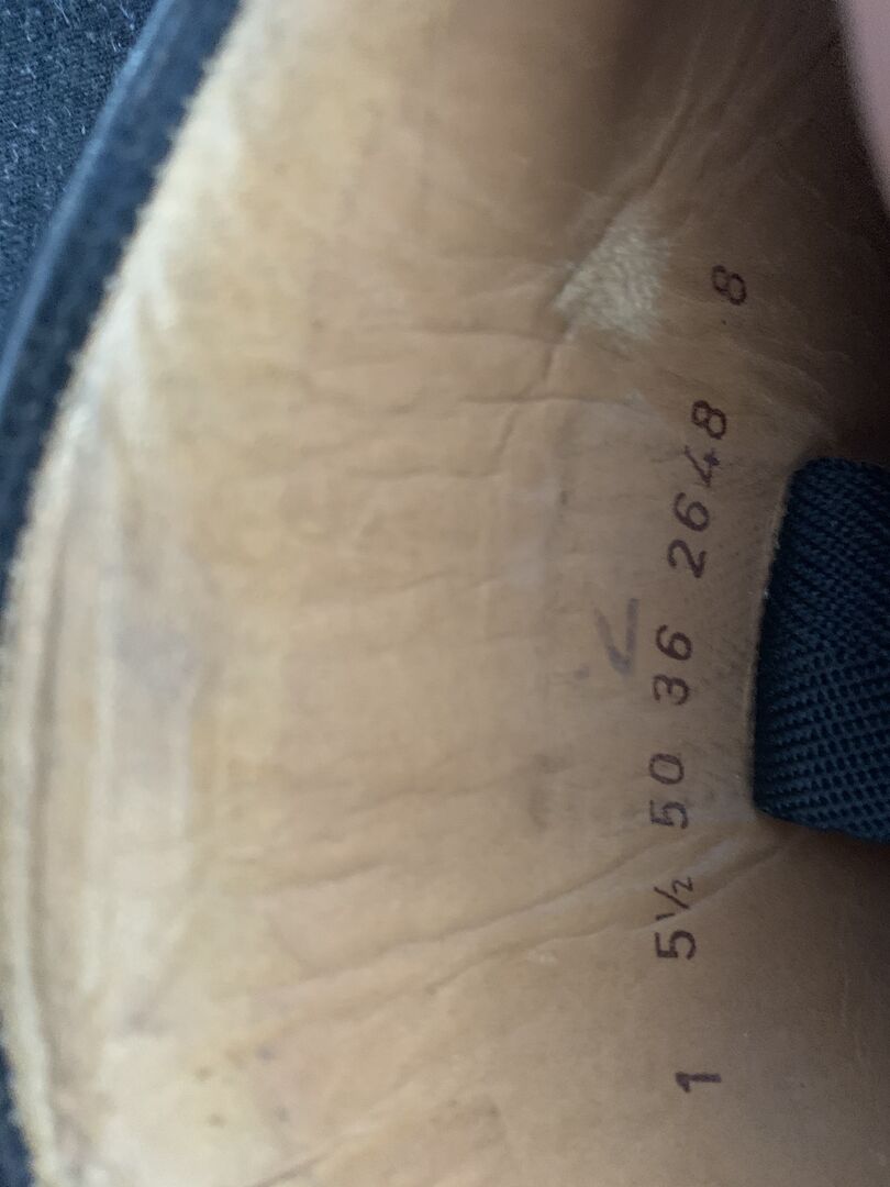 Buty są ustawione i mają lekkie ślady zużycia na podeszwie.