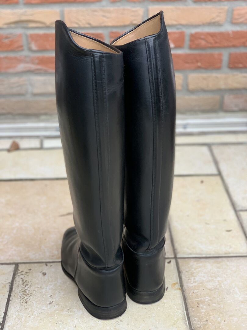 Buty jeździeckie King - Stan bardzo dobry, gdyż założone tylko kilka razy. Bardzo dobrze zadbane. Rozmiar 8 odpowiada 41,5. Wysokość: 51cm Szerokość: 38cm Zostanie dostarczony z lekką torbą na buty i drewnianym kozakiem.