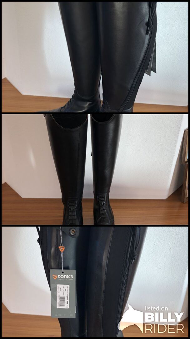 Buty jeździeckie NOWOŚĆ - Nowe, nienoszone buty jeździeckie Tonics Jupiter damskie rozmiar 37, wysokość łydki 44, szerokość łydki 37. Z tyłu zamek błyskawiczny i elastyczna wstawka. Wewnątrz specjalna skóra samoprzylepna! Nowa cena 2019 € 399,-. Sprzedaż prywatna, bez możliwości wymiany!