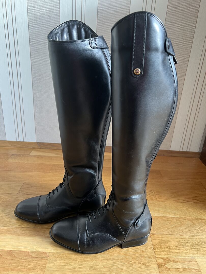 Buty jeździeckie Sergio Grasso rozmiar 38 - Wysokiej jakości buty jeździeckie Sergio Grasso wykonane ze skóry z podszewką ze skóry jagnięcej w rozmiarze 38, wysokość 44,5 / łydka 35, nowe i nienoszone. Tylko raz przymierzone.