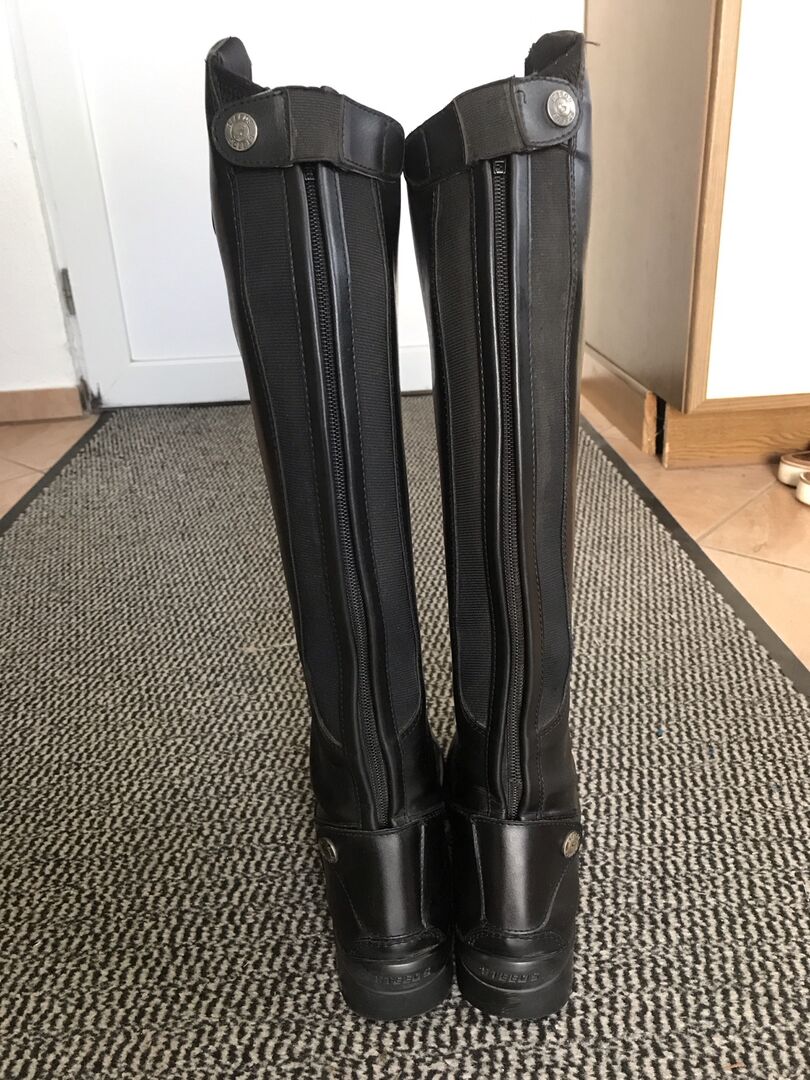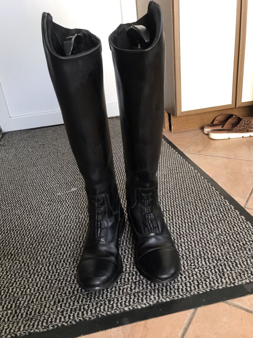 Informacje od producenta: Informacje o materiale i cechy: Wykonane z miękkiej sztucznej skóry SYLKA na zewnątrz Elastyczne wstawki po obu stronach cholewki Tkanina tekstylna wewnątrz Długi zamek błyskawiczny YKK z tyłu Wytrzymałość Zapięcie na zatrzaski na cholewce Łatwa pielęgnacja Podniesiony łuk ujeżdżeniowy Anatomiczny kształt Ochrona ostrogi Elastyczne sznurowanie w okolicy kostki Sprzedaż prywatna, brak gwarancji lub zwrotu