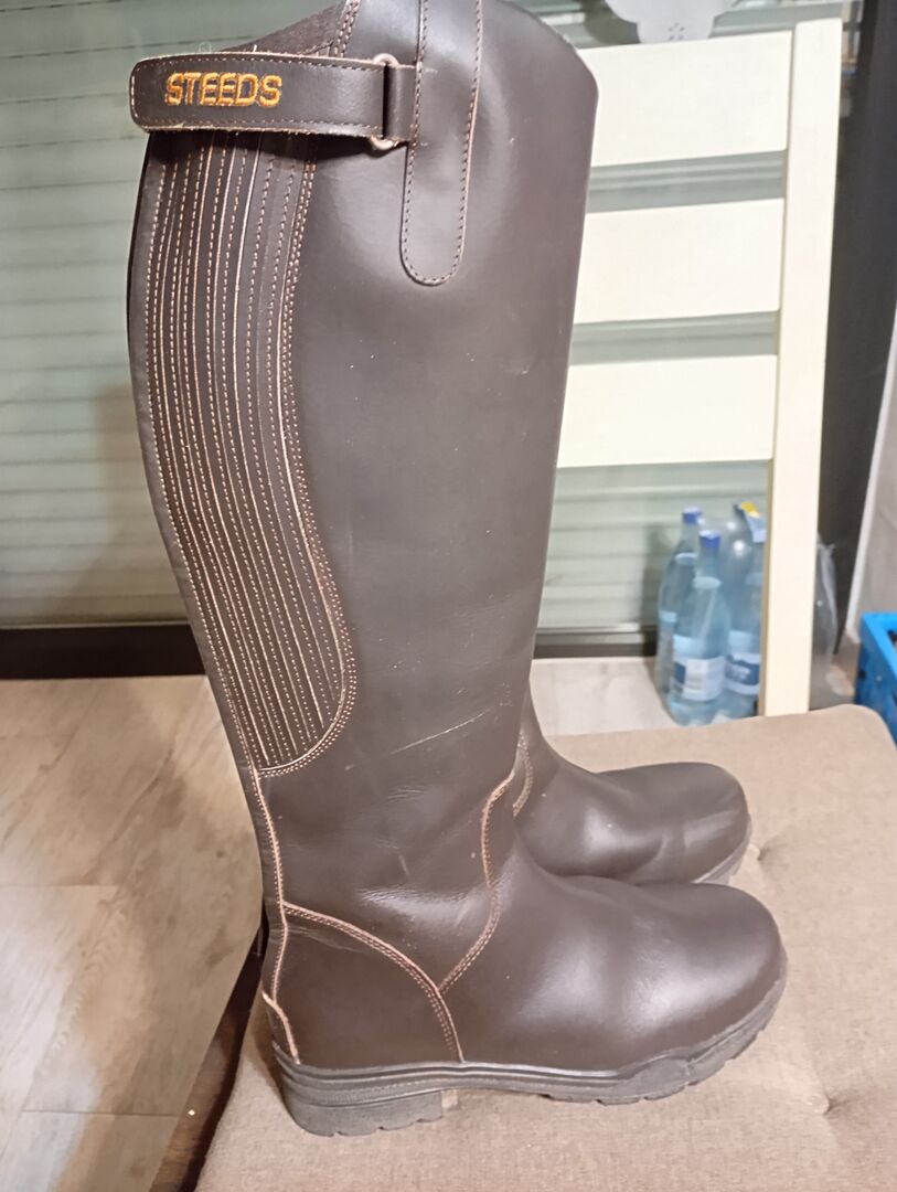 Buty jeździeckie, zimowe buty jeździeckie rozmiar 37 brązowe - Oddaję ten but, ponieważ po prostu bardziej podobają mi się czapsy i botki. But "nigdy" nie był noszony (2-3 razy) i był w domu w szafie. Rozmiar podany jest 38, ale wygląda na 37.