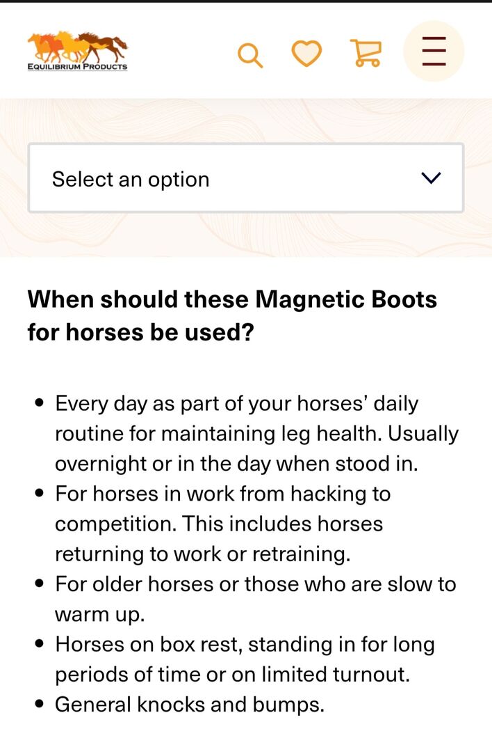 Equilibrium magnetic boots 1 pair medium 20-22cm 1 pair large 22-24 cm For a size guide- they fit my 15.3hh tb and 17.2hh warmblood- mediums in front, large for hind legs.
