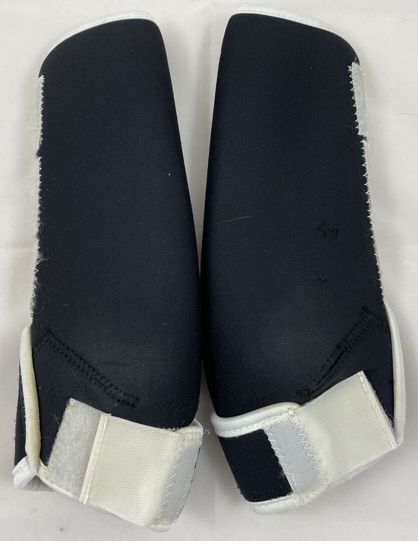Buty na płetwy EquiSafe, czarne/białe, rozmiar L - Sprzedam używane getry EquiSafe Colorado w głównym kolorze czarnym z białym, rozmiar L. Ślady użytkowania patrz zdjęcia. Tekst sprzedaży: "Wykonane z łatwego w pielęgnacji, gładkiego 8 mm neoprenu. Ten getr optymalnie chroni i wspiera ścięgna i więzadła. Dolne zapięcie na rzepy jest przeciągane wokół głowy płetwy i mocowane przez trzy kolejne zapięcia na rzepy w górnej części. Optymalna do treningów i biegów przełajowych, ponieważ do gładkiej powierzchni nie przywiera brud. Getry można prać w temperaturze 30°C. Praktyczne! Zastawione rozmiarami, mogą być zakładane jako getry przednie i tylne."