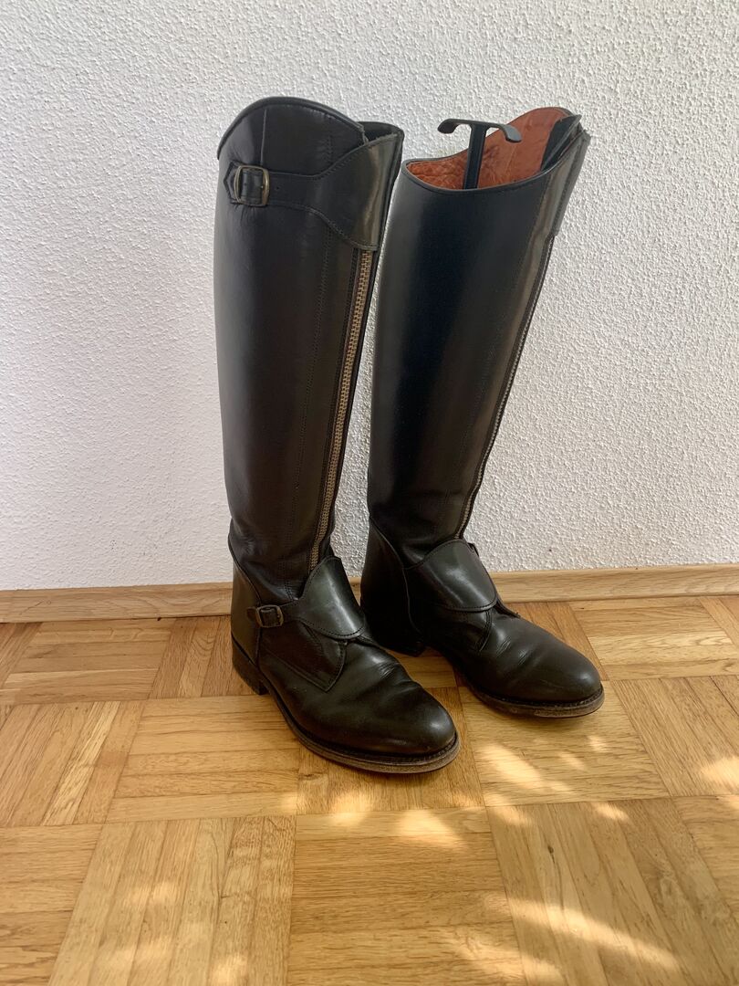 Buty polo od Valverde Botas - Świetne buty do gry w polo, tylko trochę zużyte. Wysokość wewnętrzna ok. 40 cm; wysokość zewnętrzna ok. 47 cm.