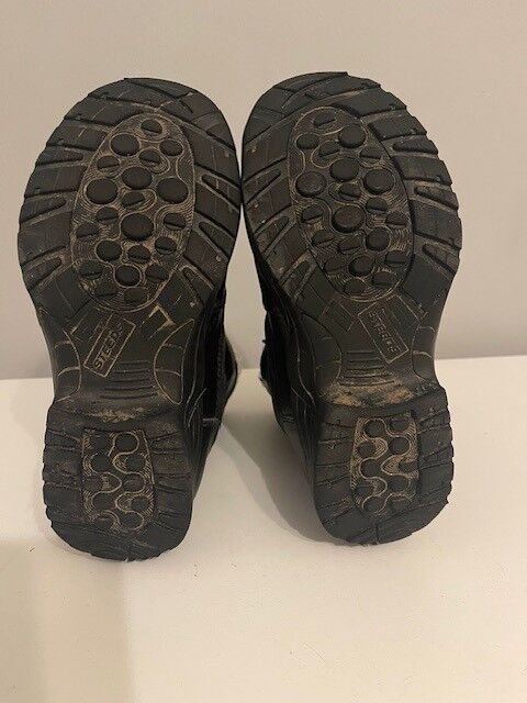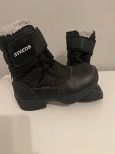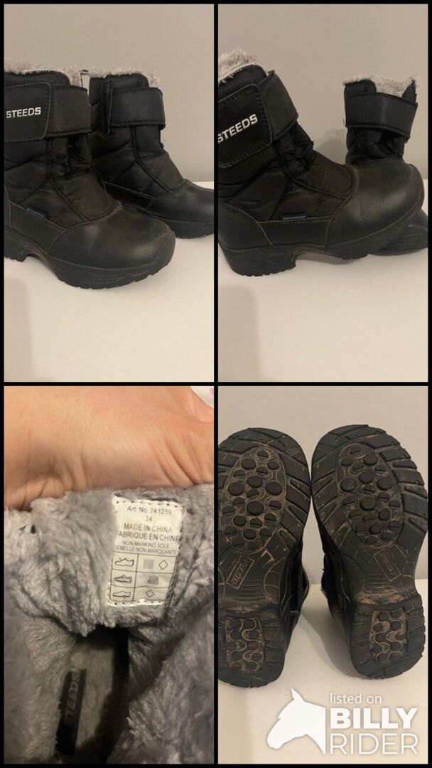 Buty termiczne rozmiar 34 - Wodoodporne, średniej wysokości buty termiczne z szerokim ściągaczem do zakładania i zdejmowania w kilka sekund. Niezależnie od tego, czy pracujesz w stajni, czy jeździsz w zimnie, te termiczne buty z wodoodporną membraną, zintegrowaną izolacją termiczną i wysokiej jakości polarową podszewką (100% poliester) utrzymają stopy w cieple i suchości przez cały czas. Górna część cholewki wykonana jest z wytrzymałego materiału nylonowego, a obszar stopy z miękkiego, ale wytrzymałego PU. Z tyłu znajduje się uchwyt na ostrogę i zintegrowany odblask.