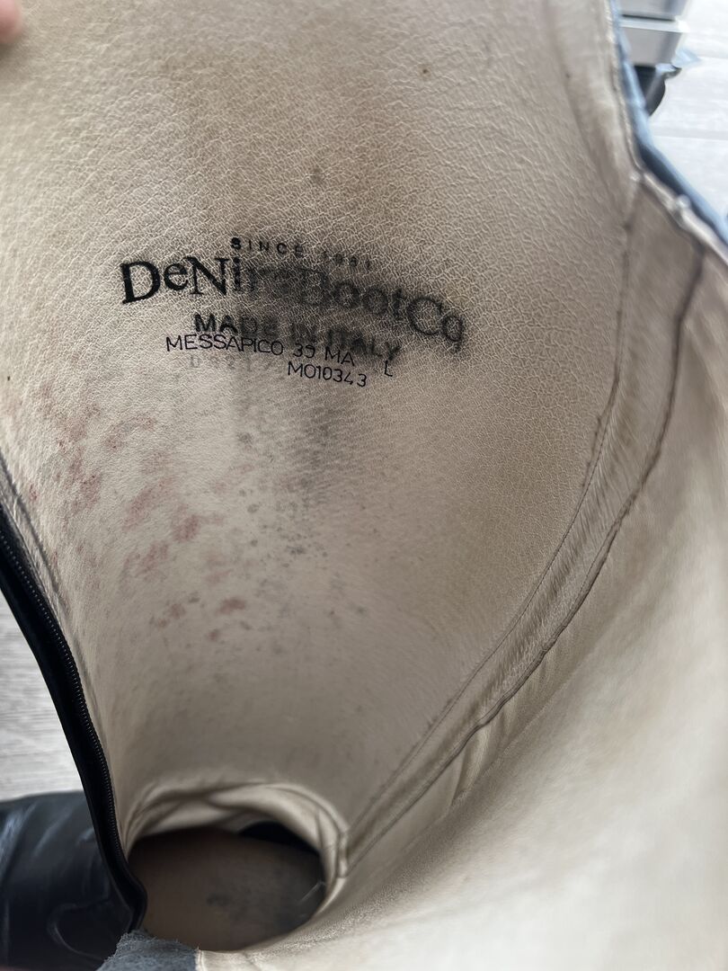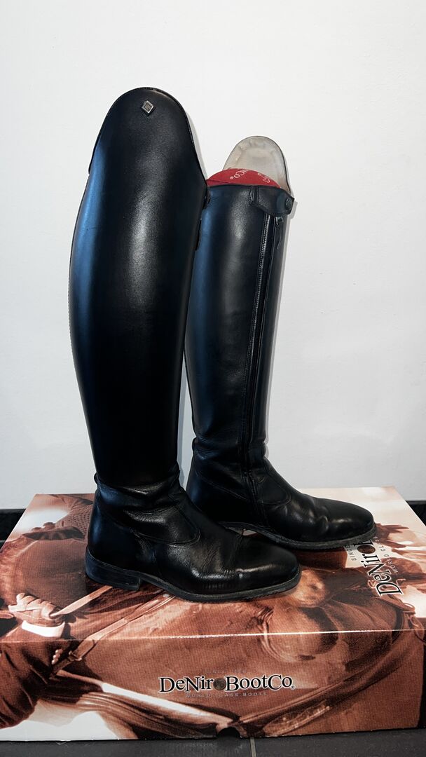 Buty ujeżdżeniowe Deniro rozmiar 39 - Sprzedam moje dobrze zachowane skórzane buty ujeżdżeniowe Deniro w rozmiarze 39 MA L. Przybliżony wzrost 47, szerokość 37,5. Niestety buty już na mnie nie pasują.