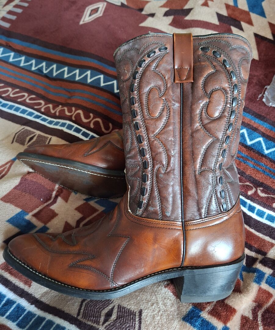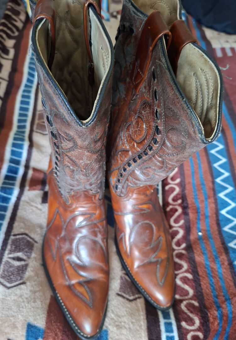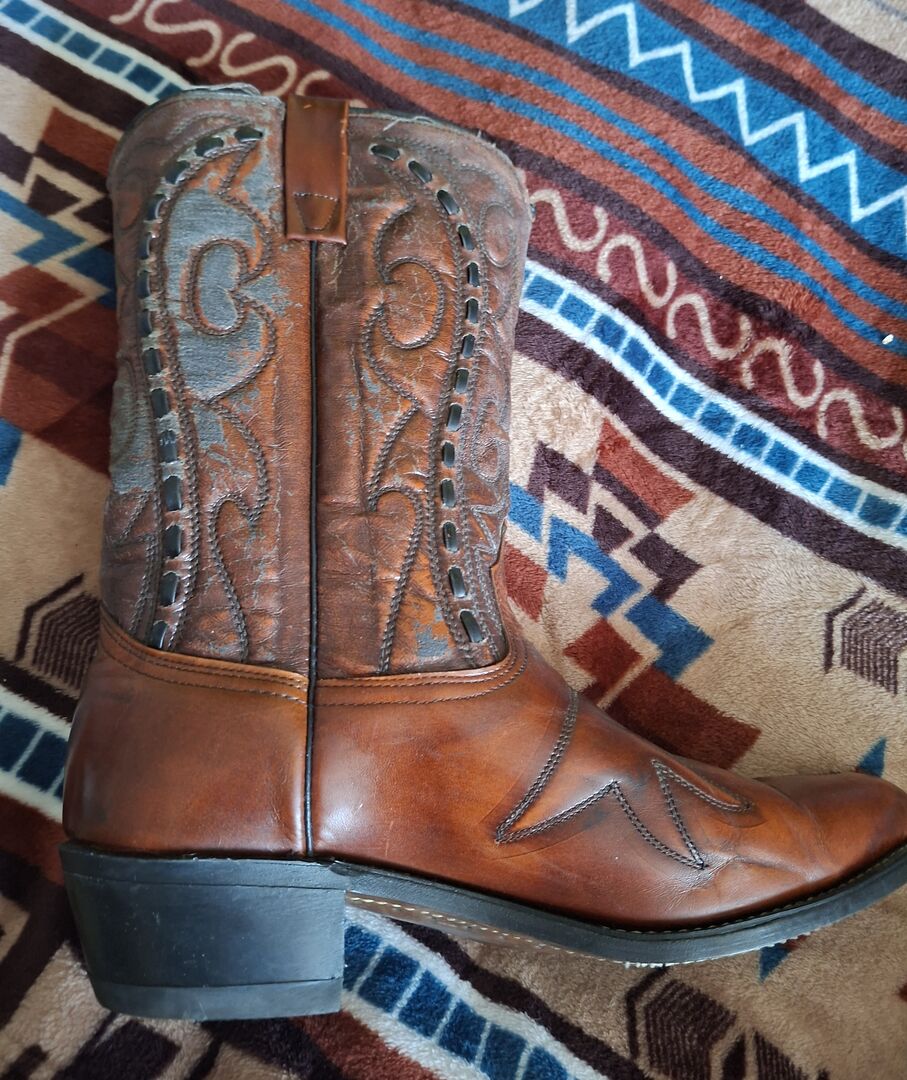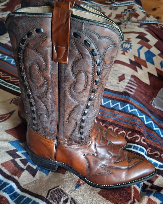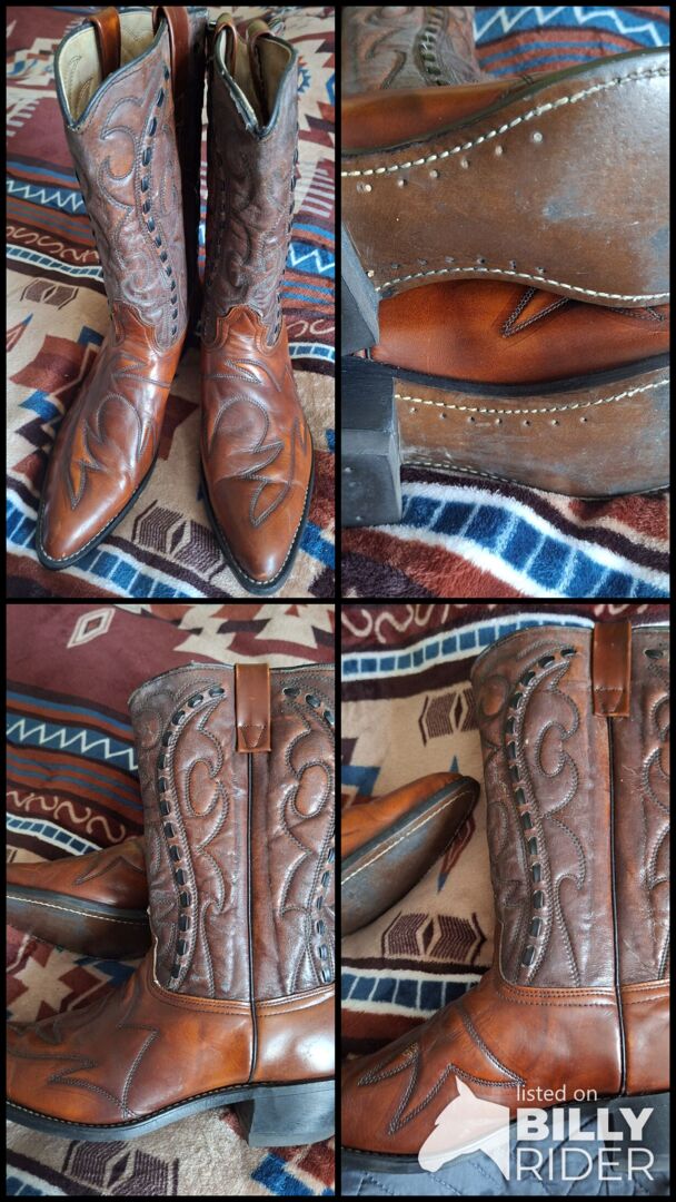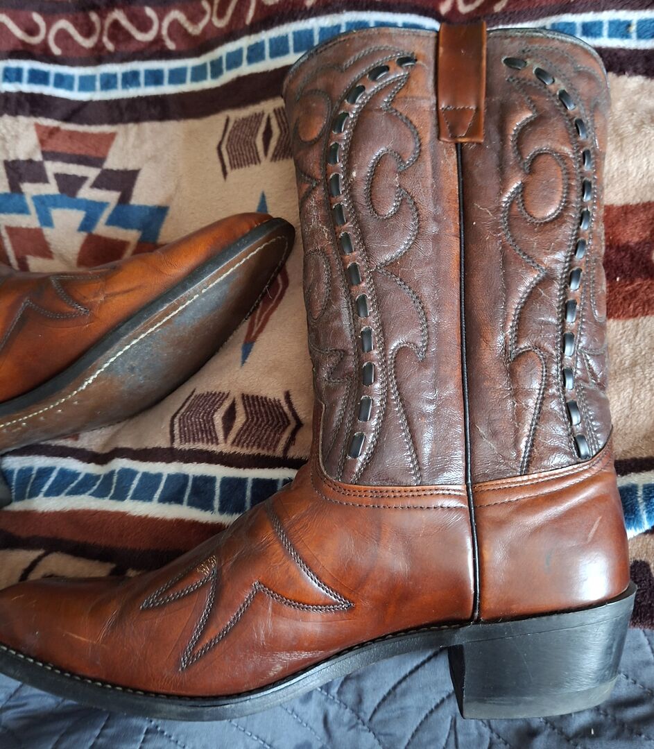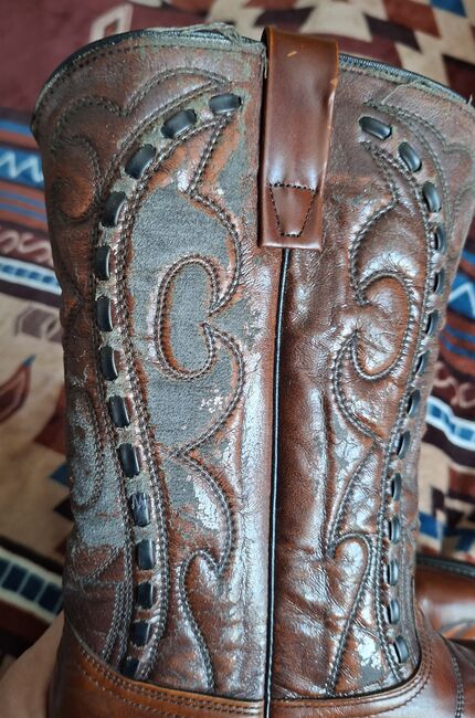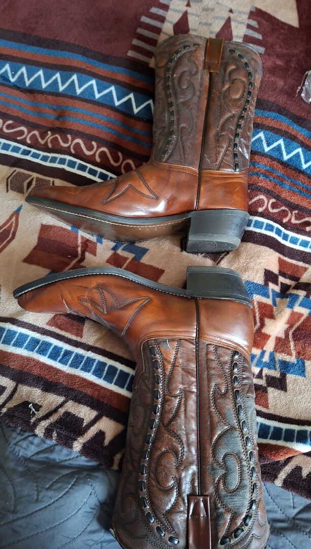 Buty westernowe Wesco USA rozmiar 42 - Sprzedam parę butów westernowych firmy Wesco rozmiar 42 (8 1/2) Buty prawie nie były noszone i są w dobrym stanie. Skóra na cholewce jest trochę twarda od długiego stania (?) i prawdopodobnie dlatego, że nie były smarowane w różnych miejscach. patrz zdjęcia. Dodam puszkę wosku pszczelego