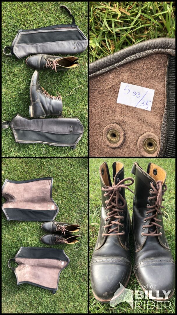 Buty za kostkę Chaps 38 - Sprzedam tutaj bardzo rzadko używane czapki i buty. Kupiłem je 2 lata temu w Jagd&pferd. Pierwotna cena wynosiła 145 EUR. Niestety, jedno ze skórzanych zapięć buta jest zerwane, ale nie ogranicza to jego użytkowania. Ubrania są bardzo miękkie i doskonale dopasowują się do łydki.