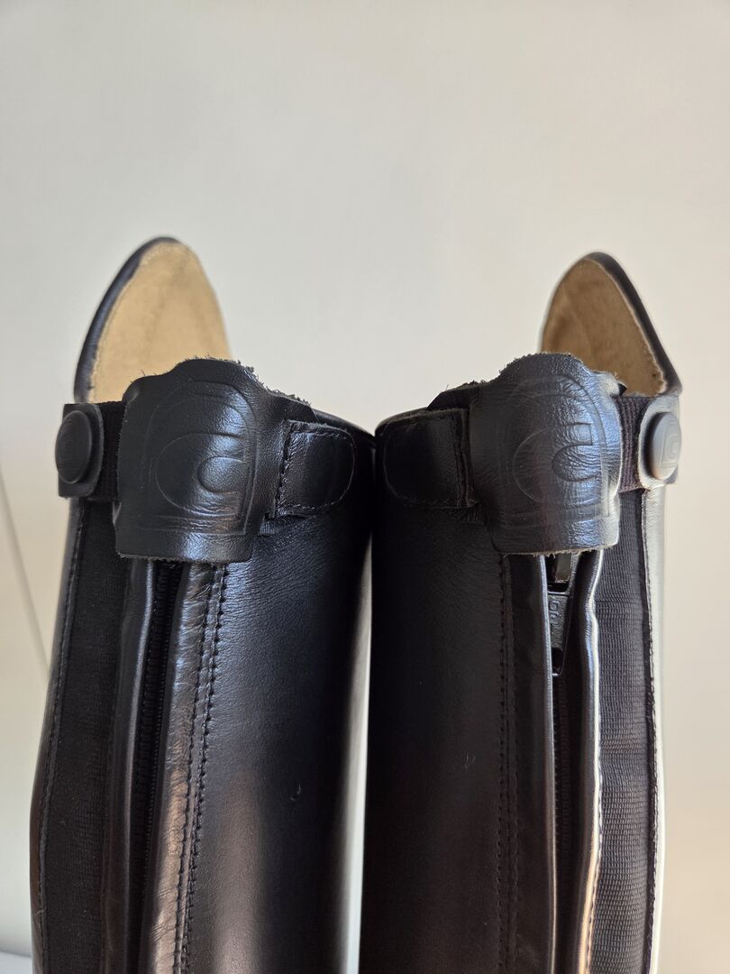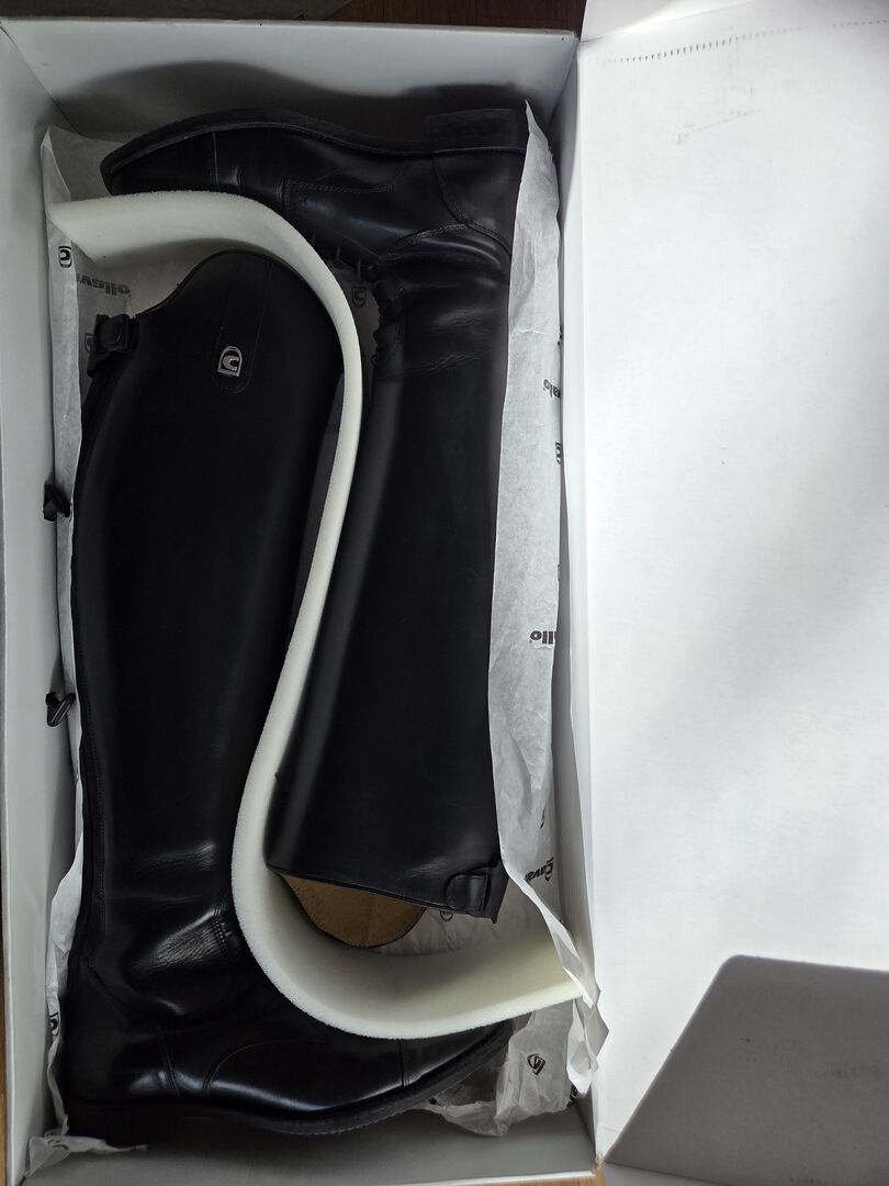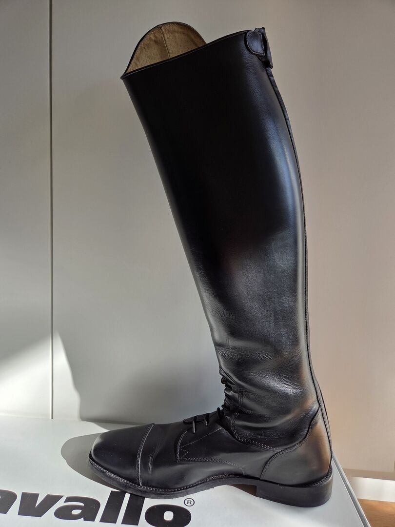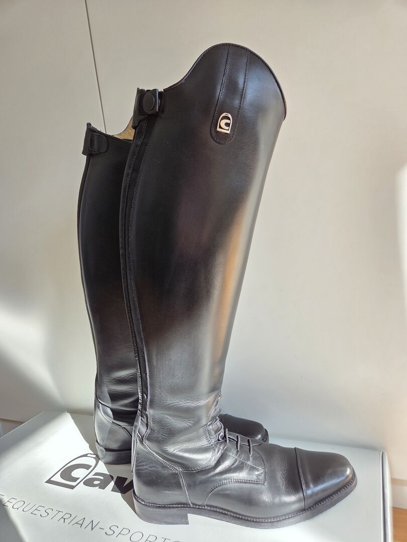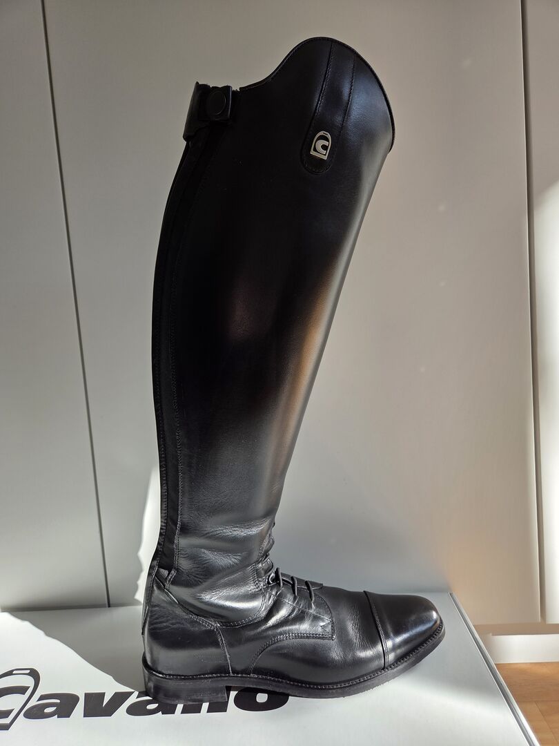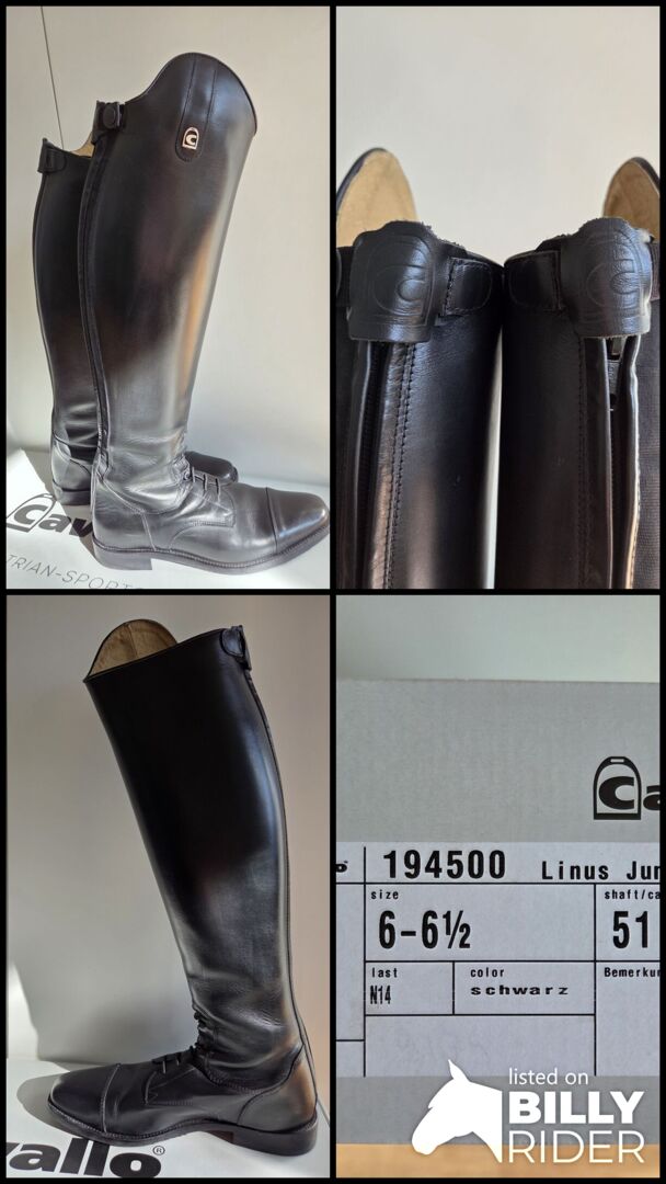 Marka: Cavallo - Model Linus Jump - Rozmiar: 6-6,5 - Wysokość cholewki: 51 cm - Szerokość łydki: 37 cm - Kolor: czarny - oryginalna cena: 299 € - Dostępne oryginalne opakowanie - W zestawie cholewki do butów
