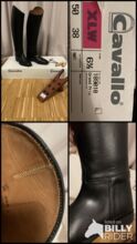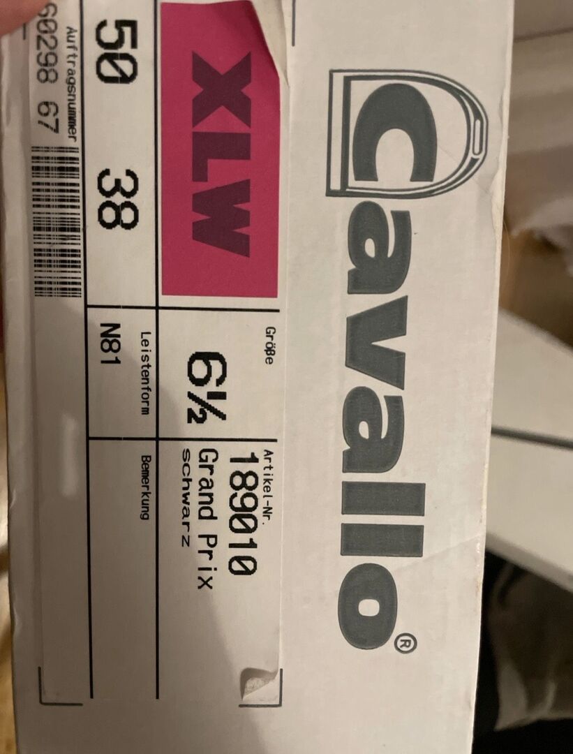 Cavallo Grand Prix 6.5/50/38 XLW - Prawie żadnych zagnieceń, nigdy tak naprawdę nie noszone, więc jak nowe. Pomoc w ubieraniu i podnośnik do butów są dołączone. Niestety już nie jeżdżę. W przeciwnym razie nosić rozmiar buta 40