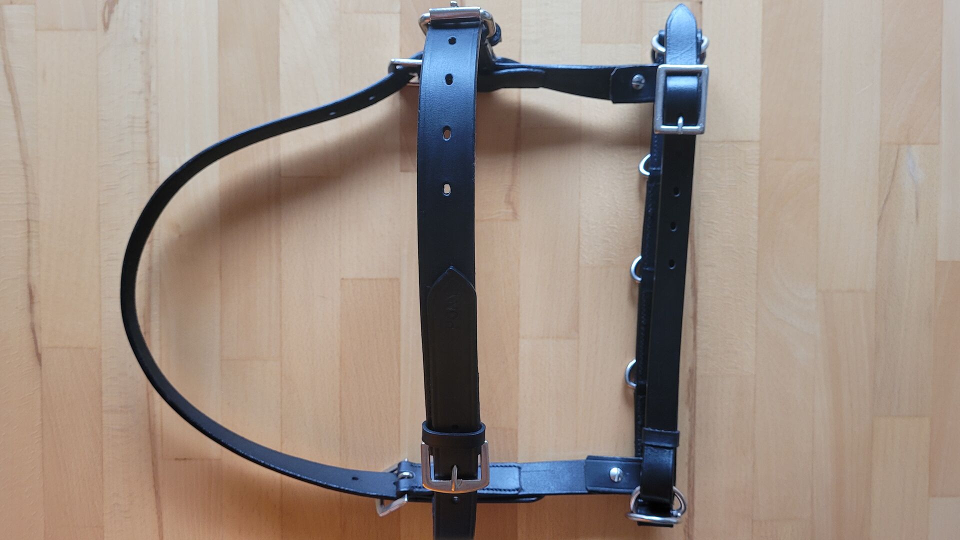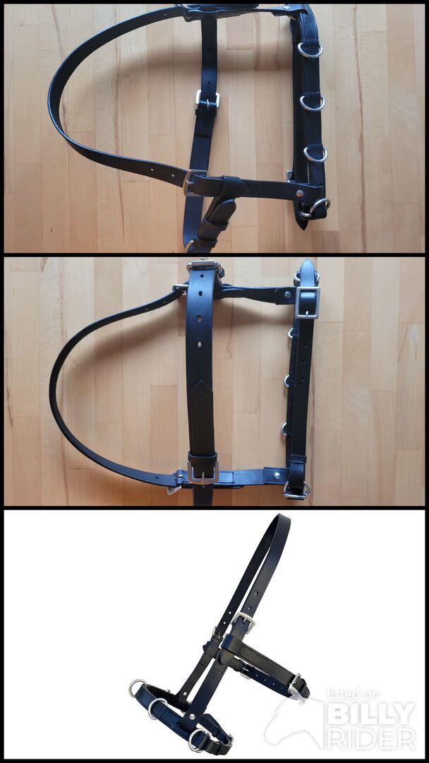 Cavesson "Basic" Rozmiary Cop lub Full Zupełnie nowy - cavesson "Favour wykonany ze skóry Indywidualna regulacja nagłówka, paska do popręgu i paska na nos Okucia ze stali nierdzewnej Kolor: czarny Rozmiary Cop lub Full