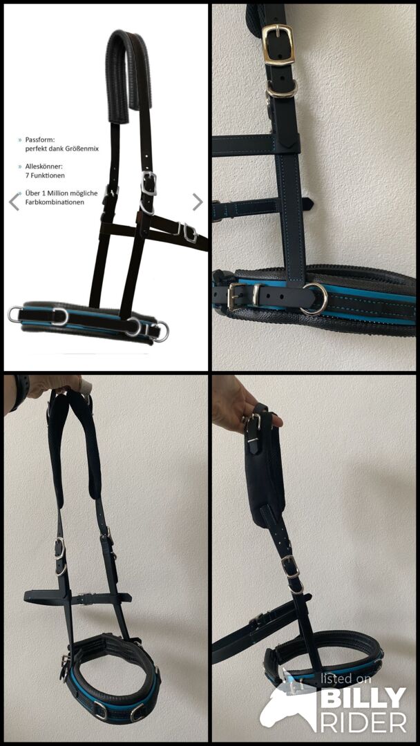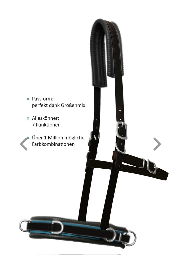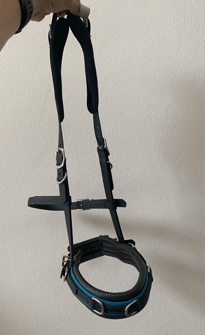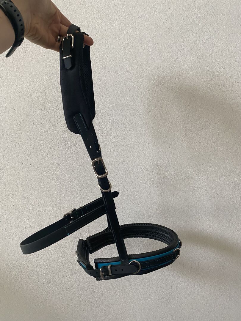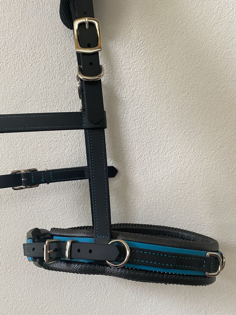 Aby uzyskać najlepsze wyniki w pracy w terenie i na lonży, konieczne jest, aby cavesson był idealnie dopasowany i aby rozkład nacisku był równomierny. Dlatego używamy 19mm Biothane do uzdy equitation i 25mm do nosidła - zapewnia to idealną równowagę między stabilnością a lekkością czy elastycznością. Dodatkowo uzdy są zawsze regulowane po obu stronach, aby idealnie dopasować się do głowy konia. Uzda może być idealnie dopasowana do najbardziej zróżnicowanych fizjonomicznie końskich głów: Paski policzkowe uzdy equi można przesuwać w górę i w dół o 4 cm za pomocą przejścia na pasku nosowym. Zapięcie na rzepy mocuje paski w prawidłowej pozycji między noskiem a opaską. Dodatkowo istnieje możliwość regulacji wysokości noska. Dla wrażliwych okolic szyi można zamówić nasze plastry na szyję, które zapewniają dodatkowe odciążenie w okolicy paska na szyję.