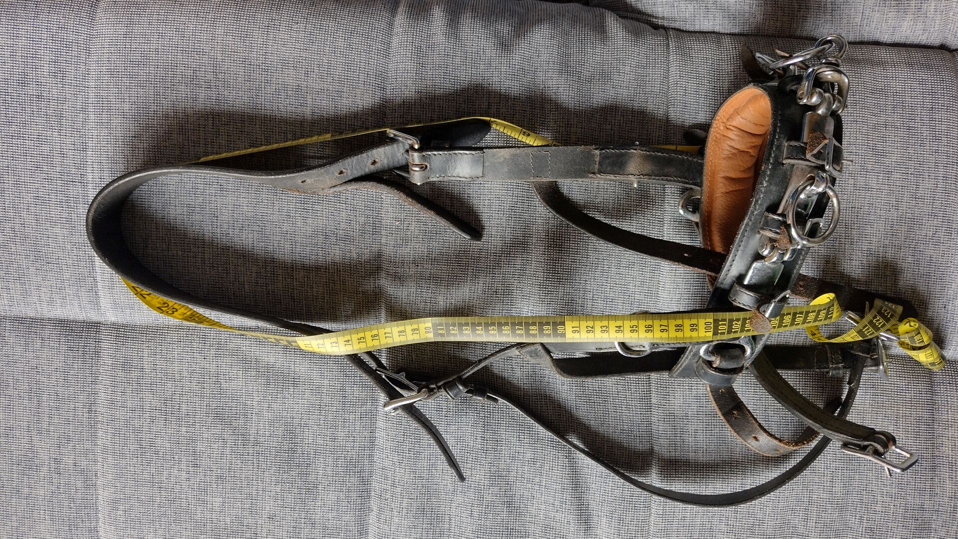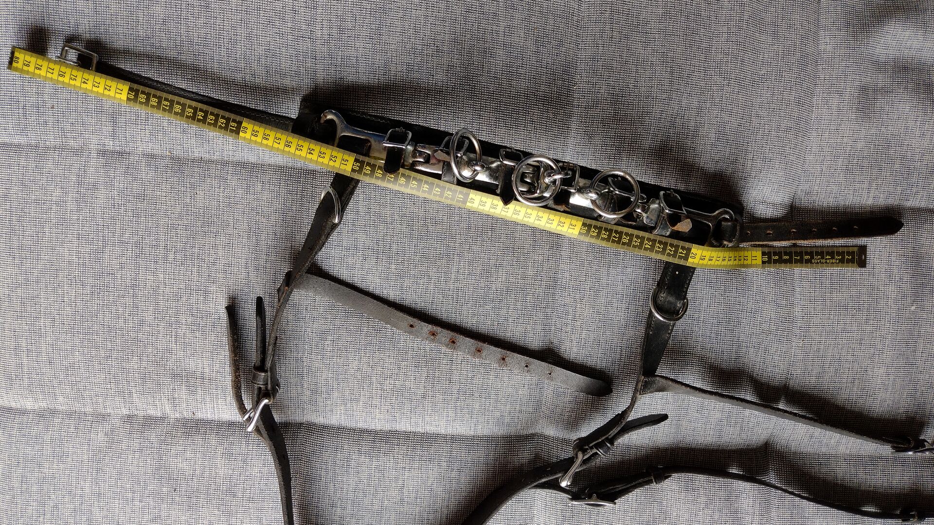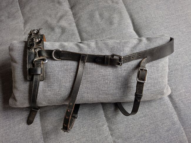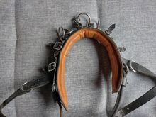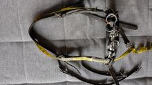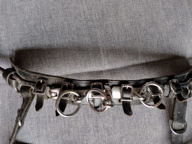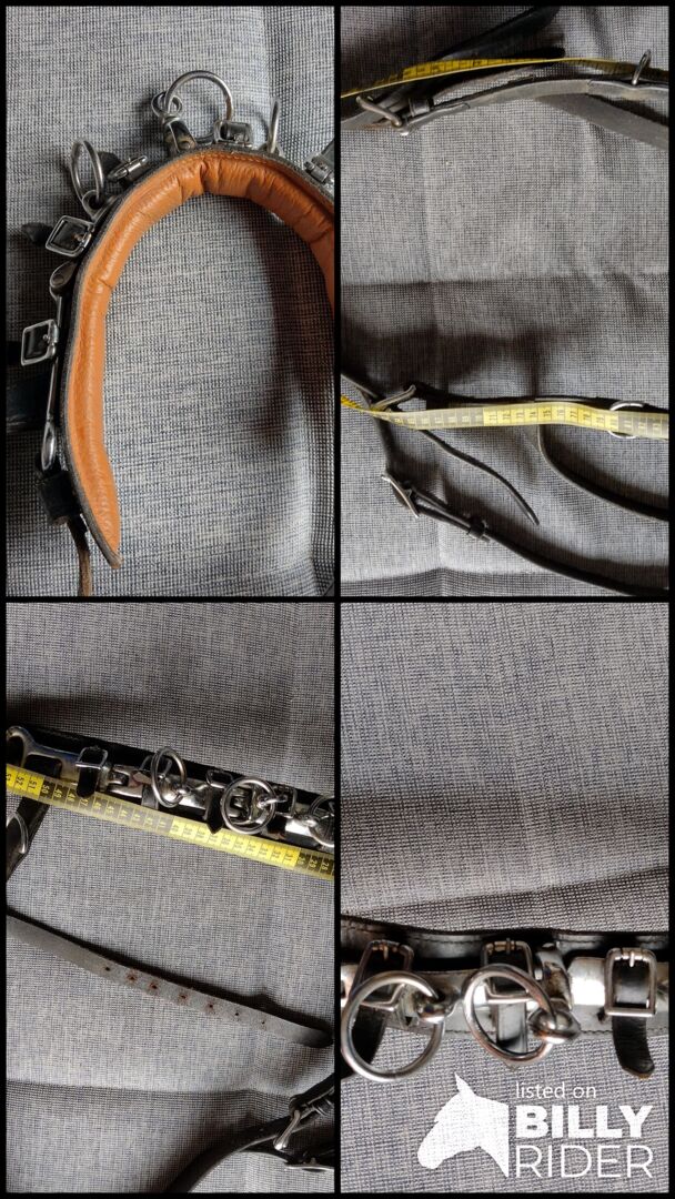 Cavesson Leather WB - Klasyczny kawecan wykonany ze skóry, używany, ale w dobrym stanie. Pasek na nos z trzema przegubami, środkowy pierścień obrotowy, gruba wyściółka na nosie. Rozmiar Cob lub WB (odpowiedni dla koni rasy Quarter i hiszpańskiej). Długość opaski regulowana w zakresie 60-75 cm, długość naczółka regulowana w zakresie 85-100 cm. Zobacz zdjęcia z taśmą mierniczą. Odbiór w Wallisellen lub Birchwil, możliwa wysyłka w CH.