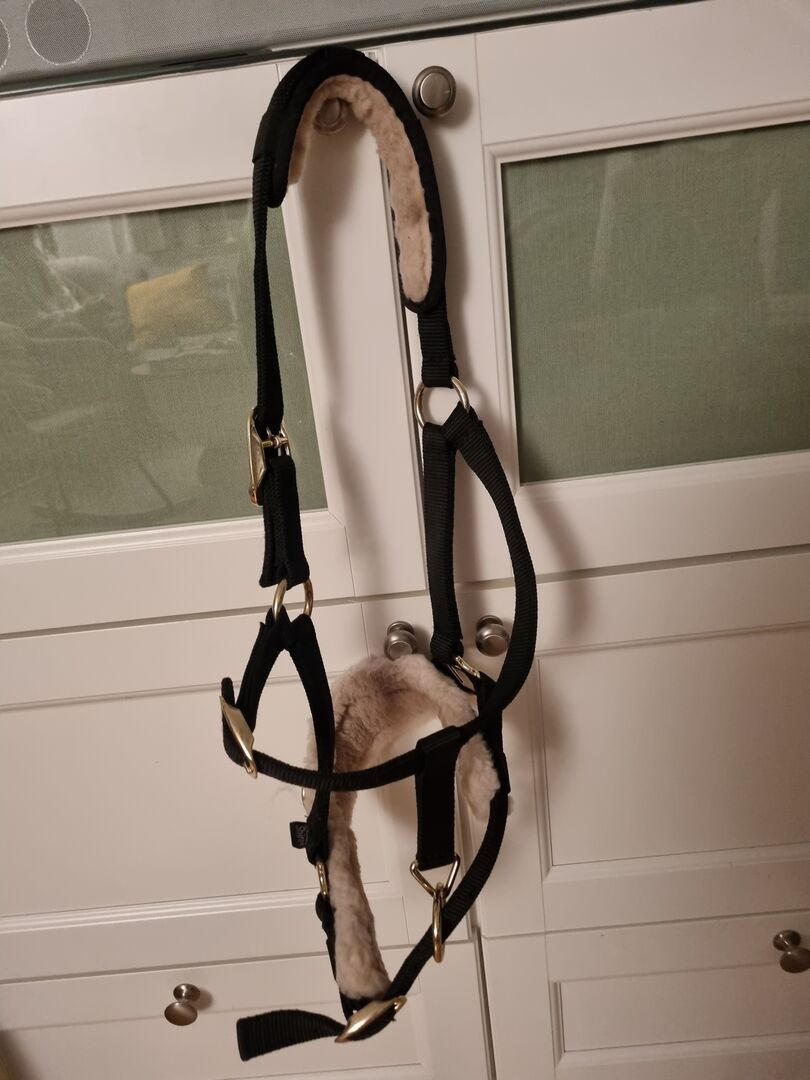Selten benutztes Kappzaum-Halfter mit Plüsch.