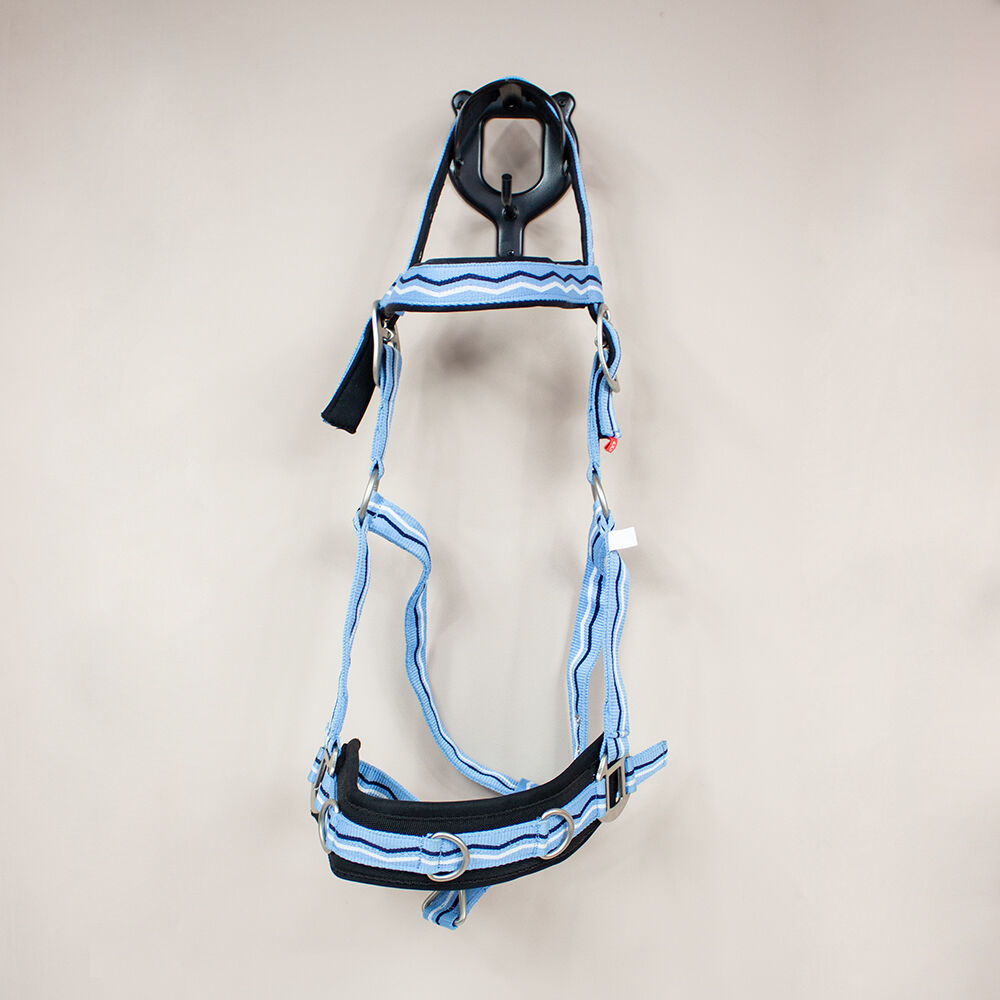 Cesarski Cavesson Jeździecki "Caveson" Turkusowy Nylon COB - Praktyczna turkusowa halterka do lonżowania firmy Imperial Riding jest idealnym towarzyszem na co dzień. Doskonale nadaje się do lonżowania. Halter jest regulowany na szyi i na nosie, dzięki czemu pasuje na wiele różnych koni i kucyków. Jest to rozmiar Cob. Jest miękko wyściełany i ma piękne biało-czarne paski. Kaweson posiada 3 pierścienie do zapinania lonży na nosie. Jest tak dobry jak nowy i nie ma żadnych wad. To the seller's offerlaunch