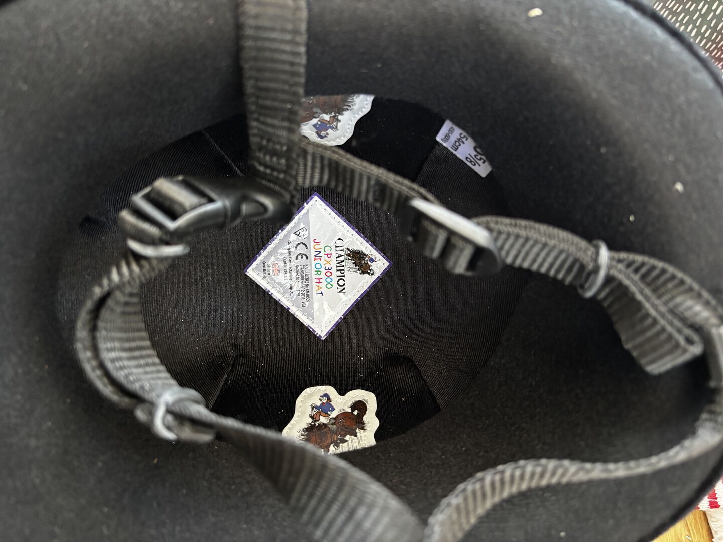 Champion CPX black velvet horse riding hat size 6 5/8 (54cm)