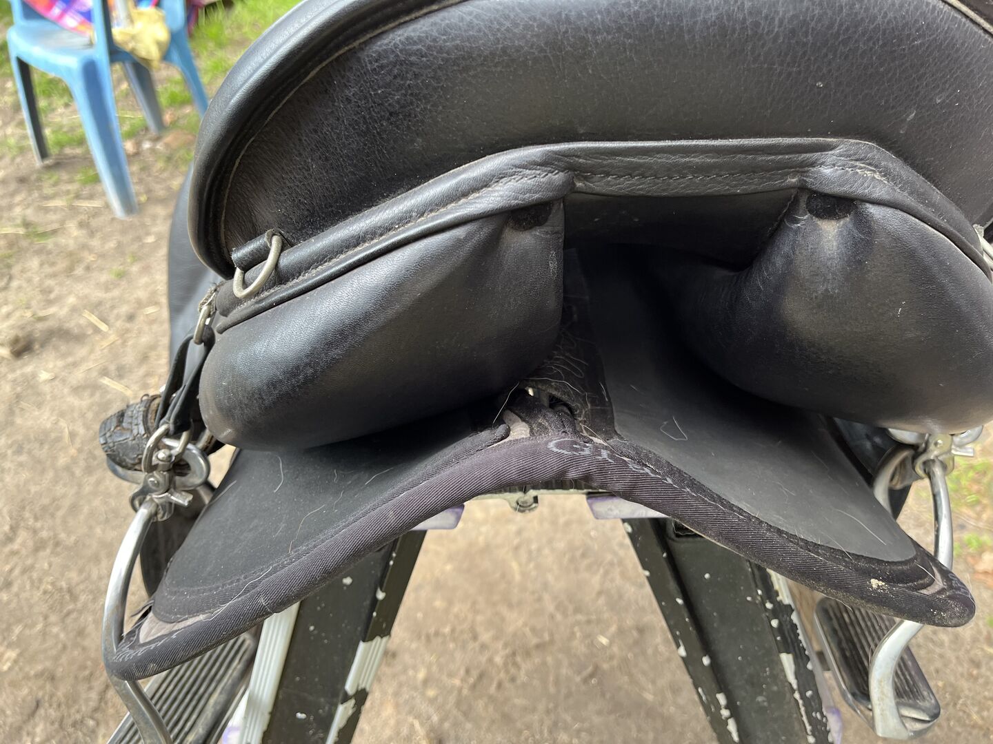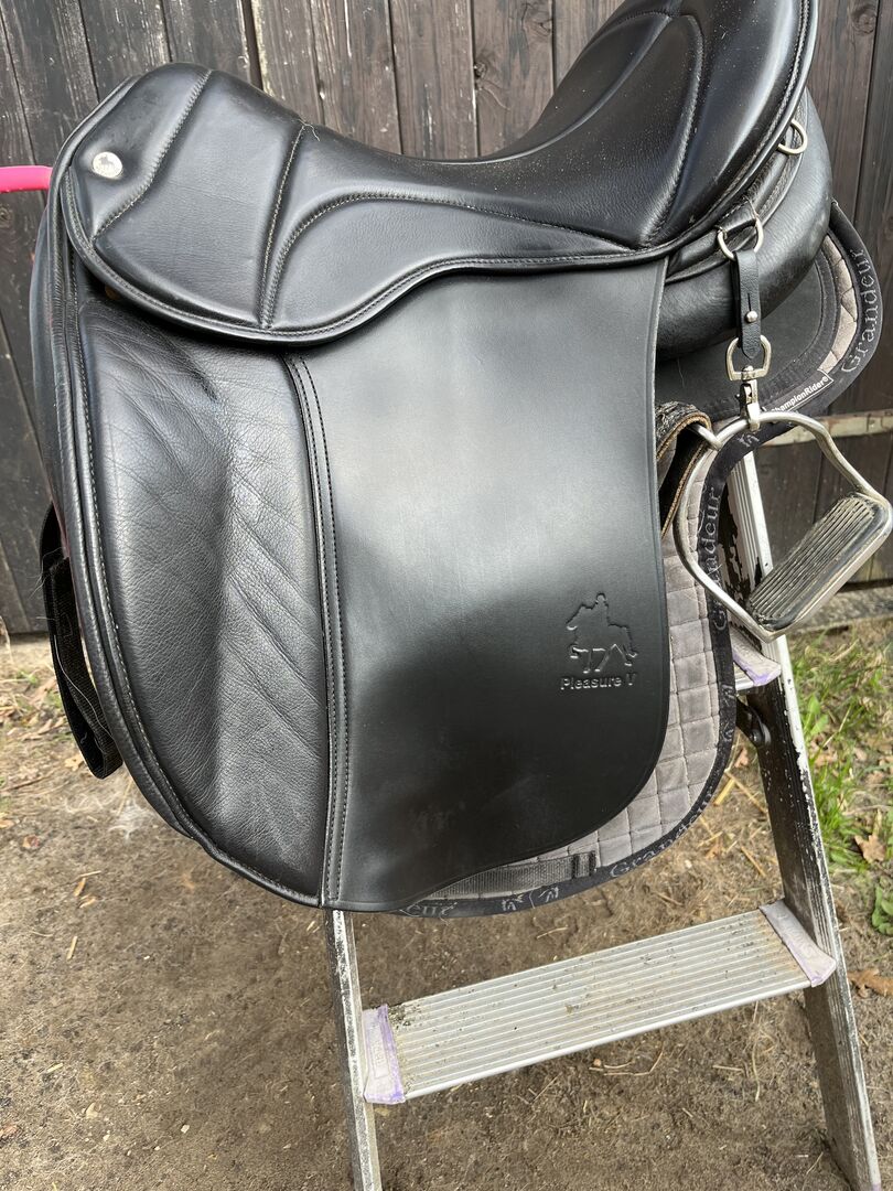 Champion Rider Pleasure V - Oferowane siodło dla konia z chodami od Championrider. Kupione z drugiej ręki, niestety nie pasuje na mojego kuca. Oferuje bardzo dobre wsparcie i jest bardzo wygodne. Średnia komora, siedzisko 18,5. Bardzo krótka powierzchnia styku