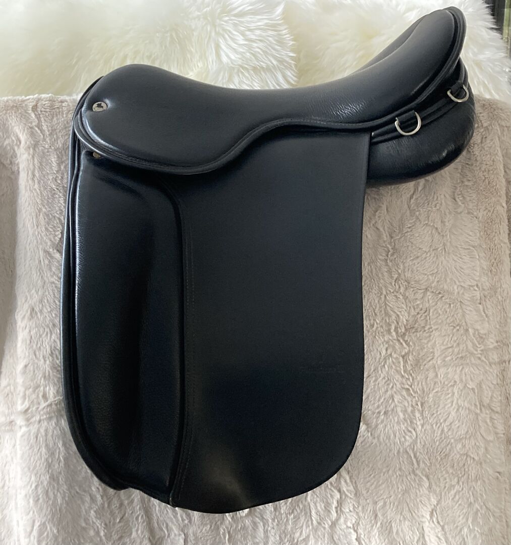 Championrider Pleasure II (17,5") - Sprzedaję moje bardzo dobrze utrzymane i dobrze zachowane siodło Championrider. Rok produkcji 2012 Zostało zamontowane na islandzkiej klaczy o normalnej szerokości ramion i lekko zakrzywionym grzbiecie. Zostało ponownie wyściełane przez Championrider w 2022 roku, ale potem leżało na koniu jeszcze co najmniej 20 razy z powodu choroby. Siedzisko ma 17,5 cala. Całe siodło jest bardzo wysokiej jakości, ma francuskie panele i może być poszerzane na zimno. Championrider jeździ na wycieczki kilka razy w roku, gdzie można sprawdzić siodła. Oryginalny pokrowiec ochronny Championrider jest dołączony. Posiadam również dwa długie popręgi firmy Mattes (105 i 110 cm). Jeśli masz jakieś pytania, po prostu zapytaj